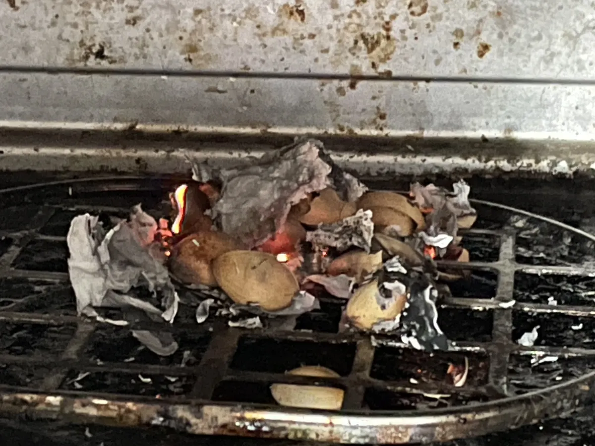 銀杏、たくさん拾って、たくさん皮を洗い流し、よし!食べるぞーと思い、どう調理するのかググってみると、茶封筒に入れて、チンしてください。とありました。どこかの会社から送られてきた茶封筒に入れて、チンを3分くらいの設定でやりました。な、な、なんと、ポン、ボン、バオーんと爆発💥して火を🔥吹いていました。もう少し長くやっていたら、台所が火の海になっていたかもしれません。