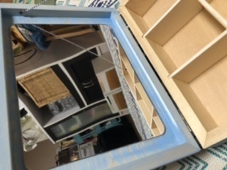 その後に鏡を付けます。ボンドを付けて養生テープでしっかりと固定します。ガチガチっと🤣