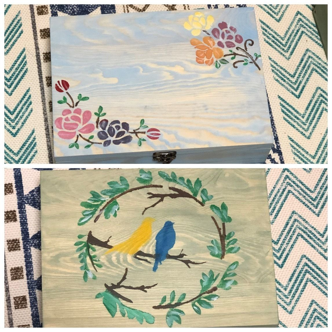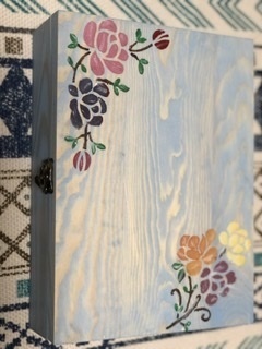 投稿を表示木目が空のようで、ステンシルもかわいいアクセサリーケースですね😊