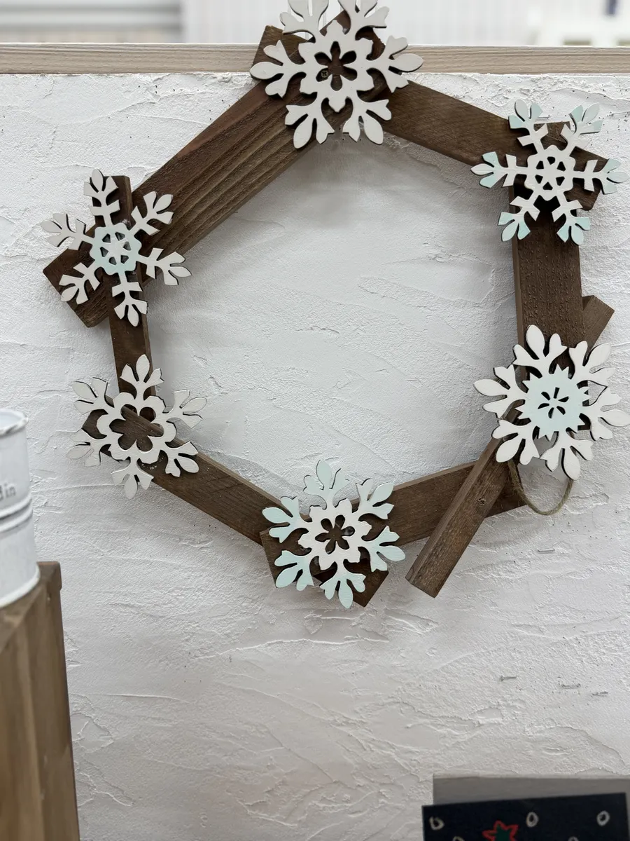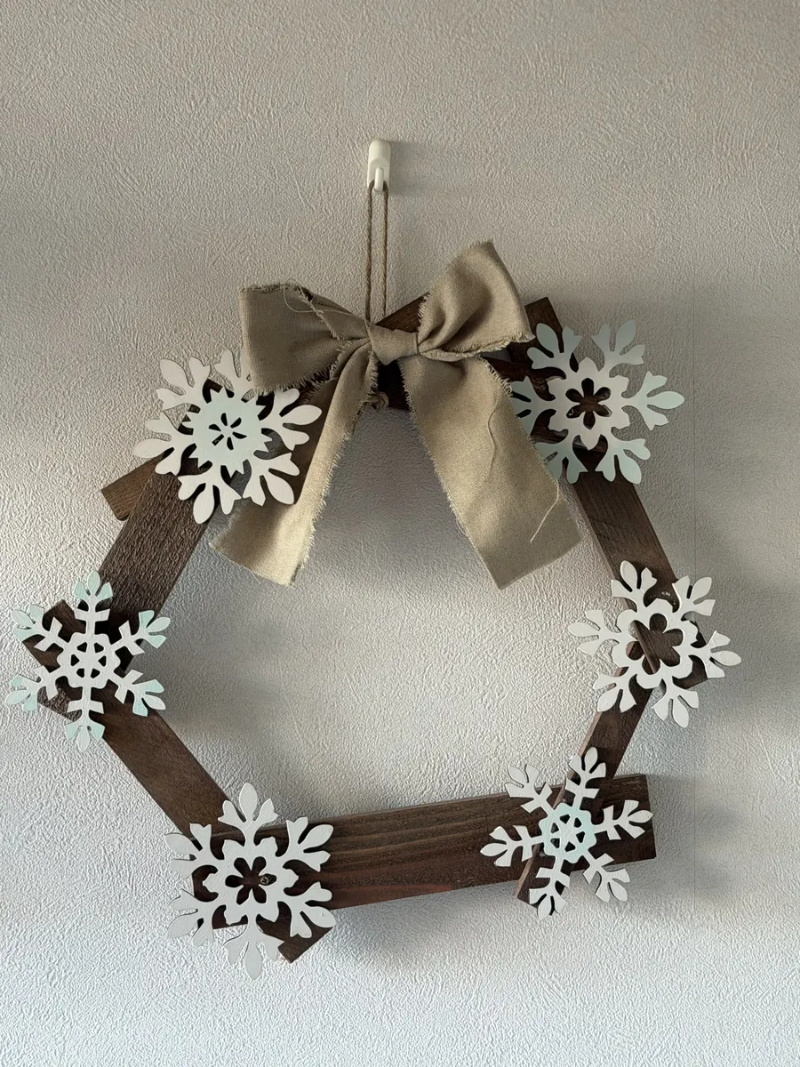 雪の結晶❄️でリース、可愛くて良いですね。マイエリアにも来ないかなあ🩷