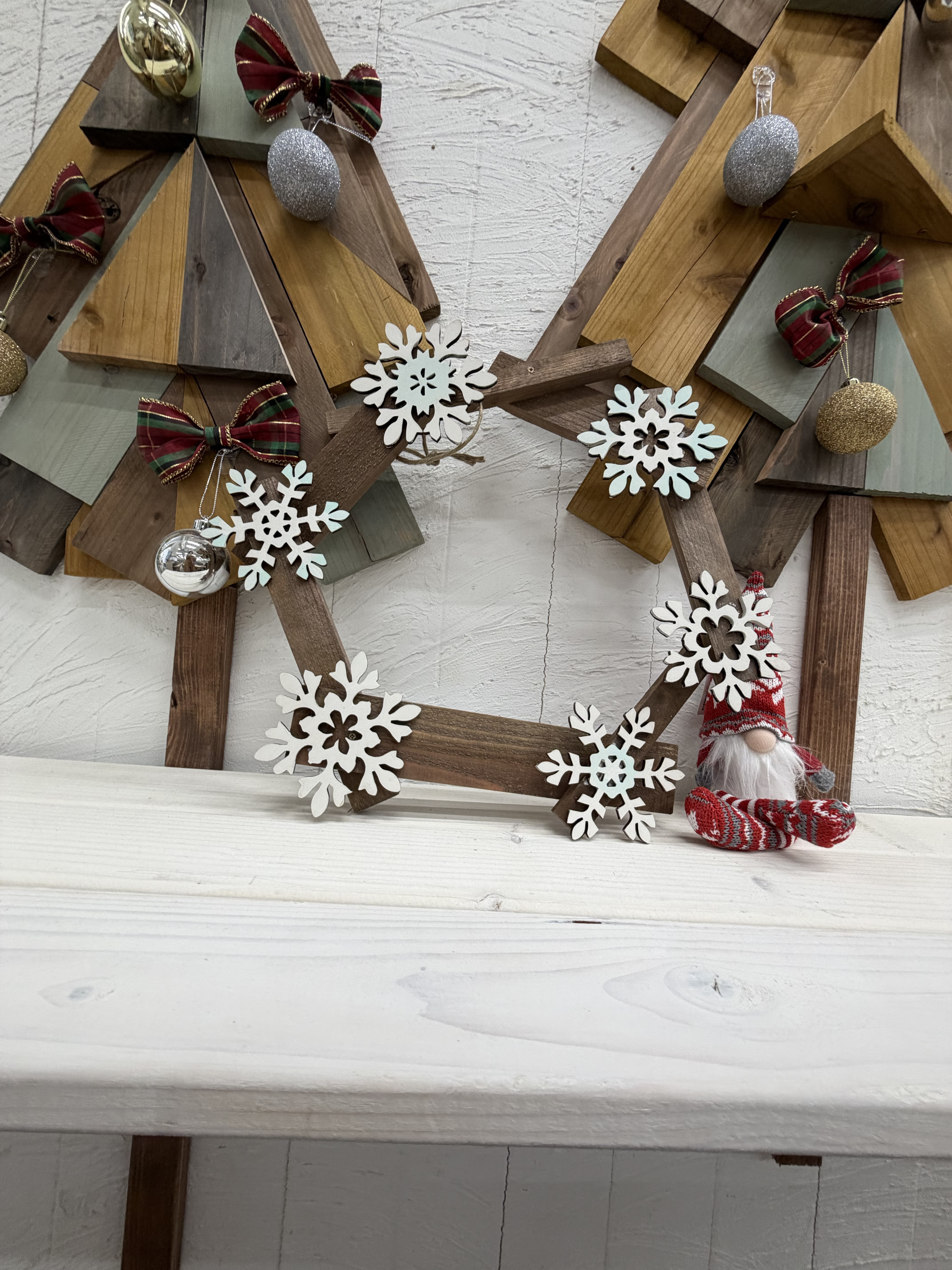 いろんな大きさの板を組み合わせてリース土台を作りました。