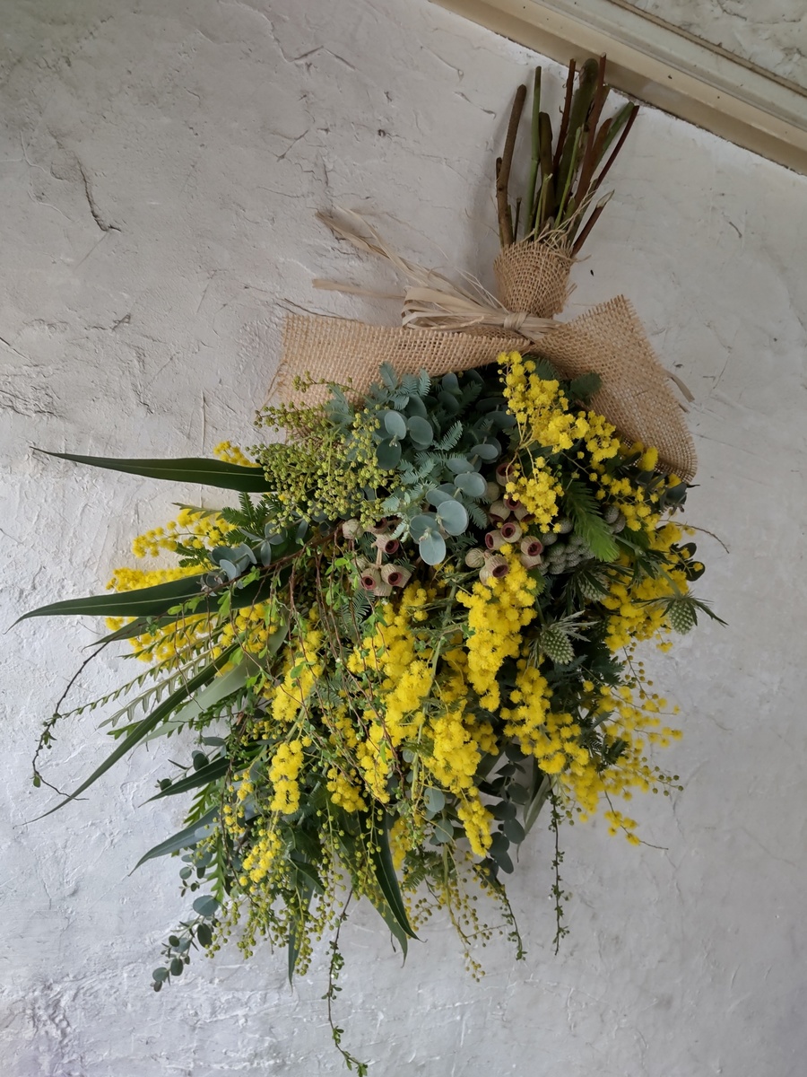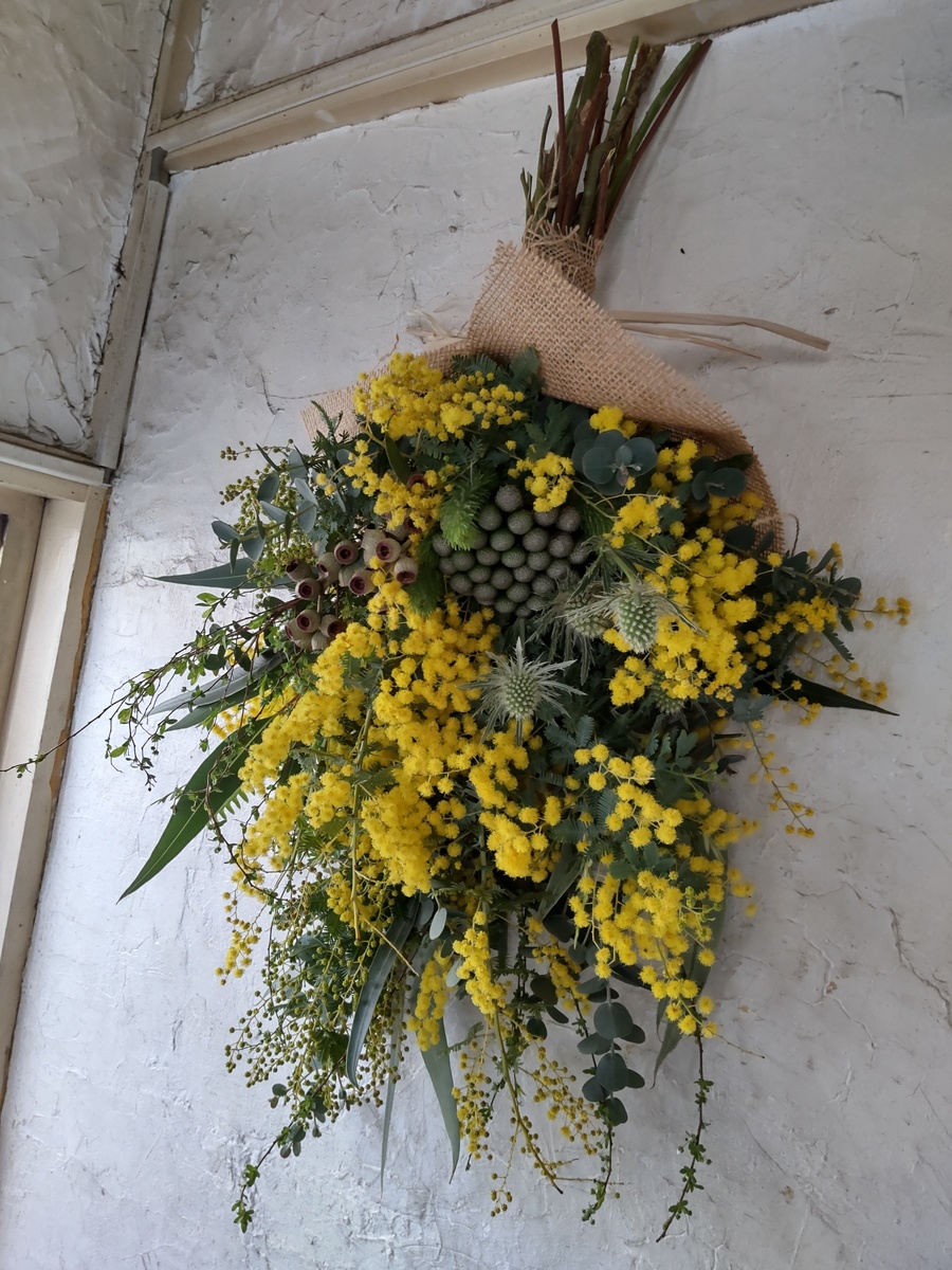 投稿を表示大きな大きなミモザのスワッグ。見応えがありますね。黄色のパワーで元気がでます🥰リースも楽しみにしています✨
