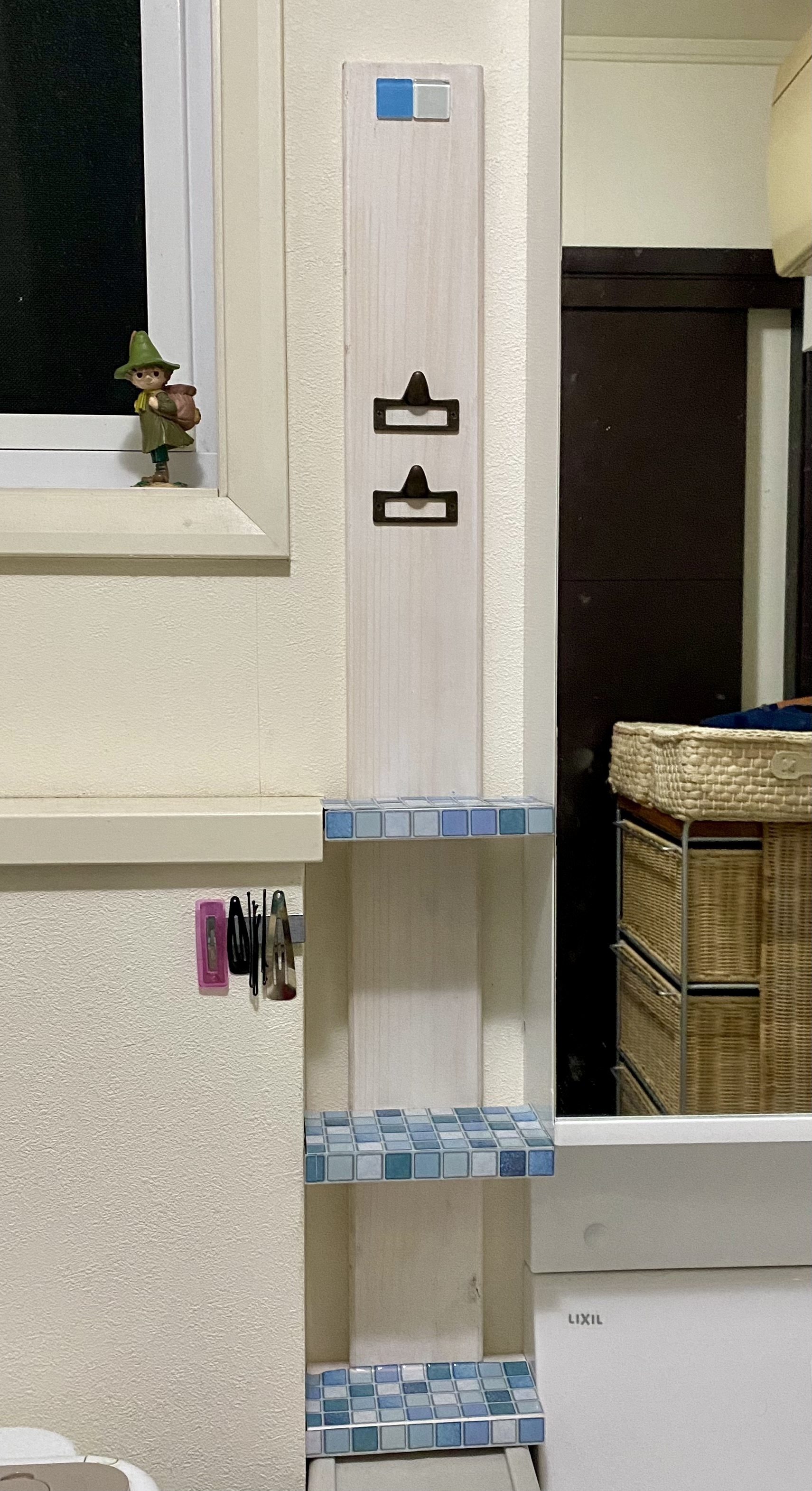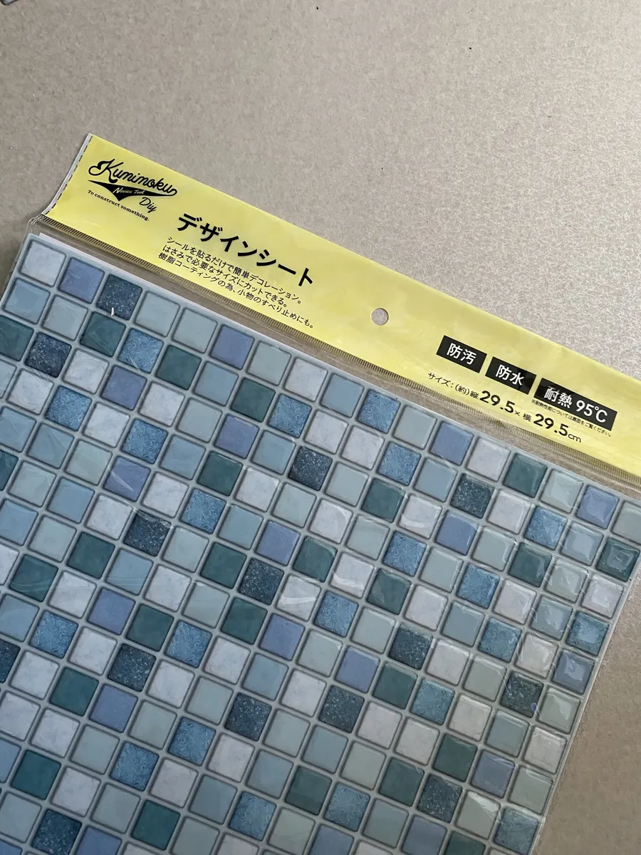 家にあったタイルを上部に付けて、デザインシートと色合い合わせて可愛く💕