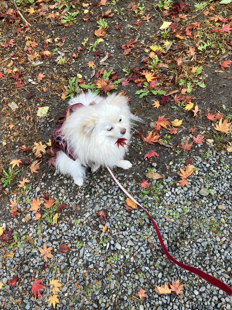 投稿を表示ステキなドレスで大人しくお座り、お利口さんですね。ドレスとのコーディネート(飾り?)と思ったら、臙脂色の紅葉🍁🙀