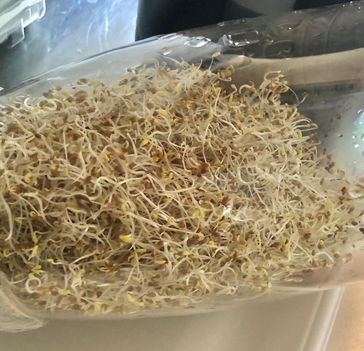 トップ > グリーン > アルファルファプロジェクト5日目 シダーローズ 2022/05/10 09:08 アルファルファプロジェクト5日目 アルファルファ簡単栽培5日目でーす。 今朝のアルファルファはこんな感じ↓ もうボトルの半分くらいまで増えてます。 モヤシっぽくなってきたでしょう? 一本が3cmくらいかなぁ。 こうなってくると傷みやすいので朝夕のゆすぎは本当に優しく優しく、でもしっかりと。 毎日洗うことで、種の皮も外れて底に溜まって行くので気をつけないと腐りやすいですからね。 ではまた明日。 いいね 共有する 共有する X LINE リンクをコピー コメントする 3 件の返信 (新着順) ミュートしたユーザーの投稿です。 投稿を表示 あにー 2022/05/11 07:04 今日、明日?明後日? シダーさんのお腹に入ってしまうのかな? カウントダウンですね💕 いいね 返信する ミュートしたユーザーの投稿です。 投稿を表示 シダーローズ 2022/05/11 07:25 明後日くらいですかねー。 以前作った時は子供がまだ小さかったから。 大人になった今の感想が楽しみです。 いいね 返信する ミュートしたユーザーの投稿です。 投稿を表示 ゆうちゃん 2022/05/10 16:21 ミニトマトよりずっと手がかかって大変ですね。でも、その分美味しいんですよね😋 いいね 返信する ミュートしたユーザーの投稿です。 投稿を表示 シダーローズ 2022/05/10 16:31 買うよりずっと美味しいですよ😋 いいね 返信する ミュートしたユーザーの投稿です。 投稿を表示 ハリー 2022/05/10 11:49 だいぶ増えましたね😲 いいね 返信する ミュートしたユーザーの投稿です。 投稿を表示 シダーローズ 2022/05/10 13:58 ねー。たった大さじ一杯の種がこんなになりましたよ。 いいね 返信する