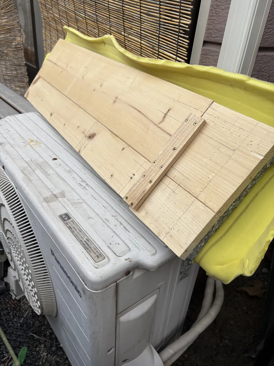 この板は以前使用していた物をビスケットで繋ぎ合わせ使用しているのですが外れてしまい補強しています。↑