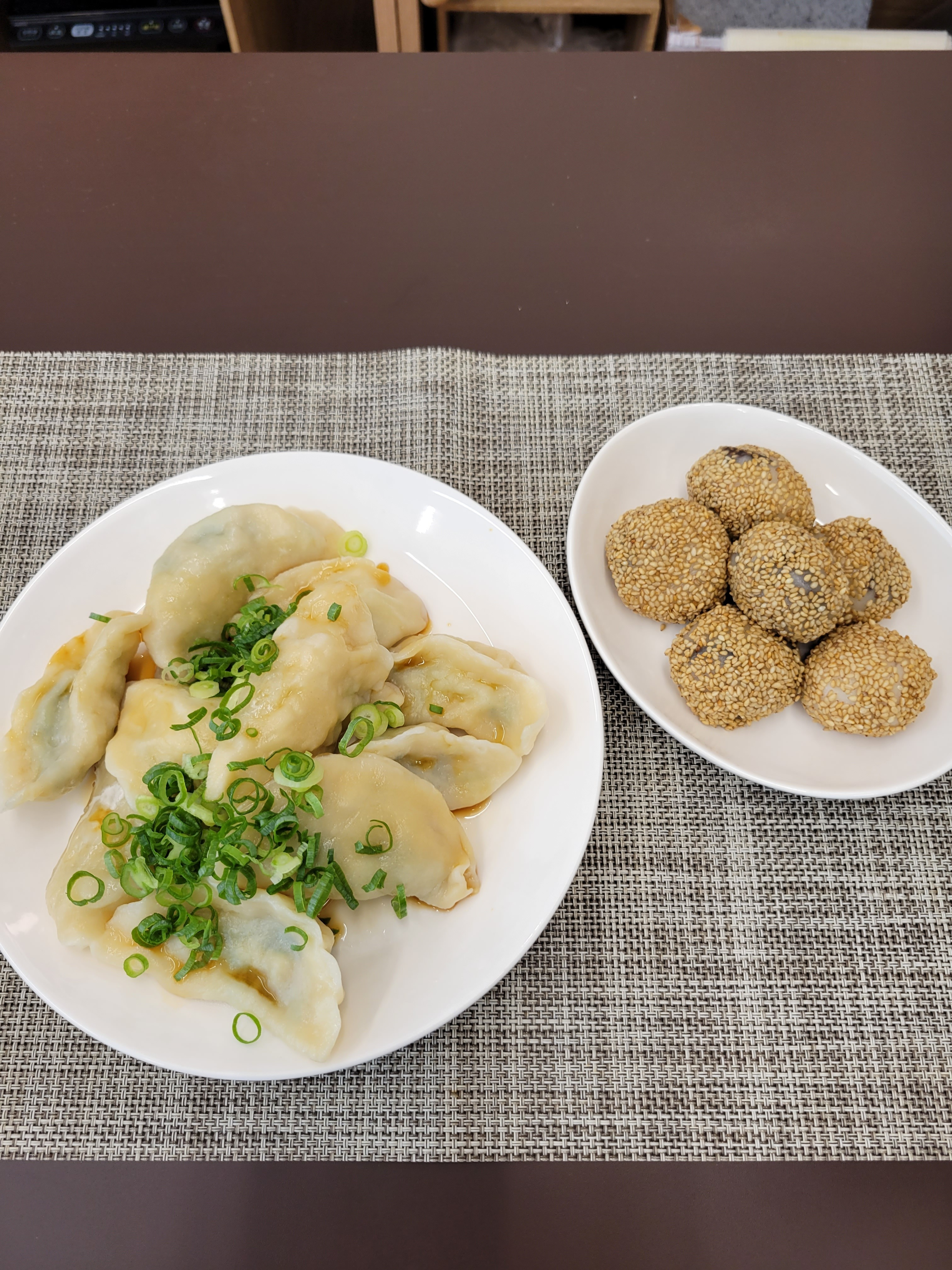 投稿を表示皮まで手作りの水餃子に揚げないからヘルシーで美味しい胡麻団子😋