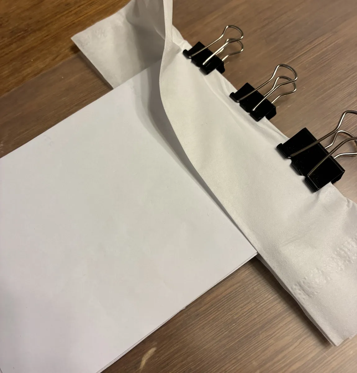 ④バラけないようにダブルクリップや輪ゴムなどで留めて、一晩乾燥させて、余分なティッシュを取ったら完成❣️