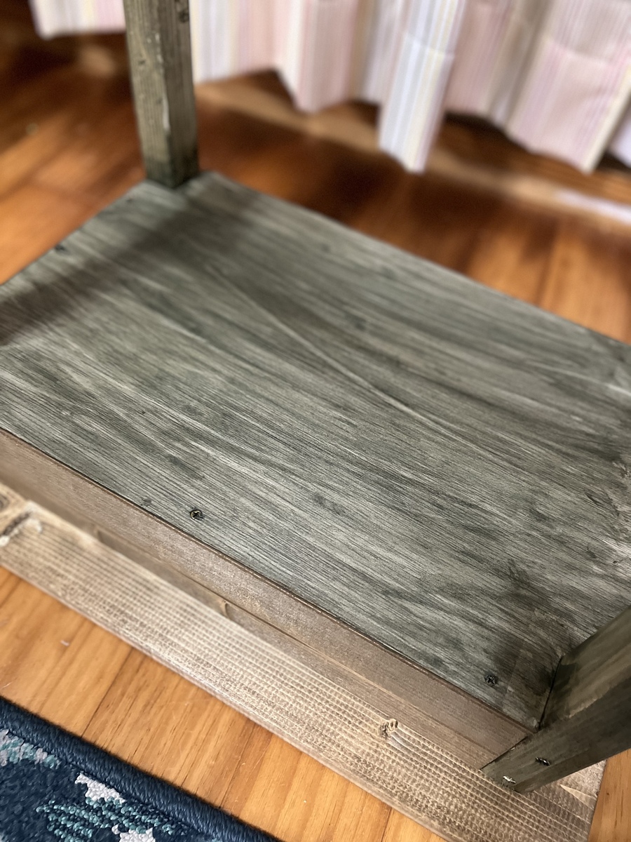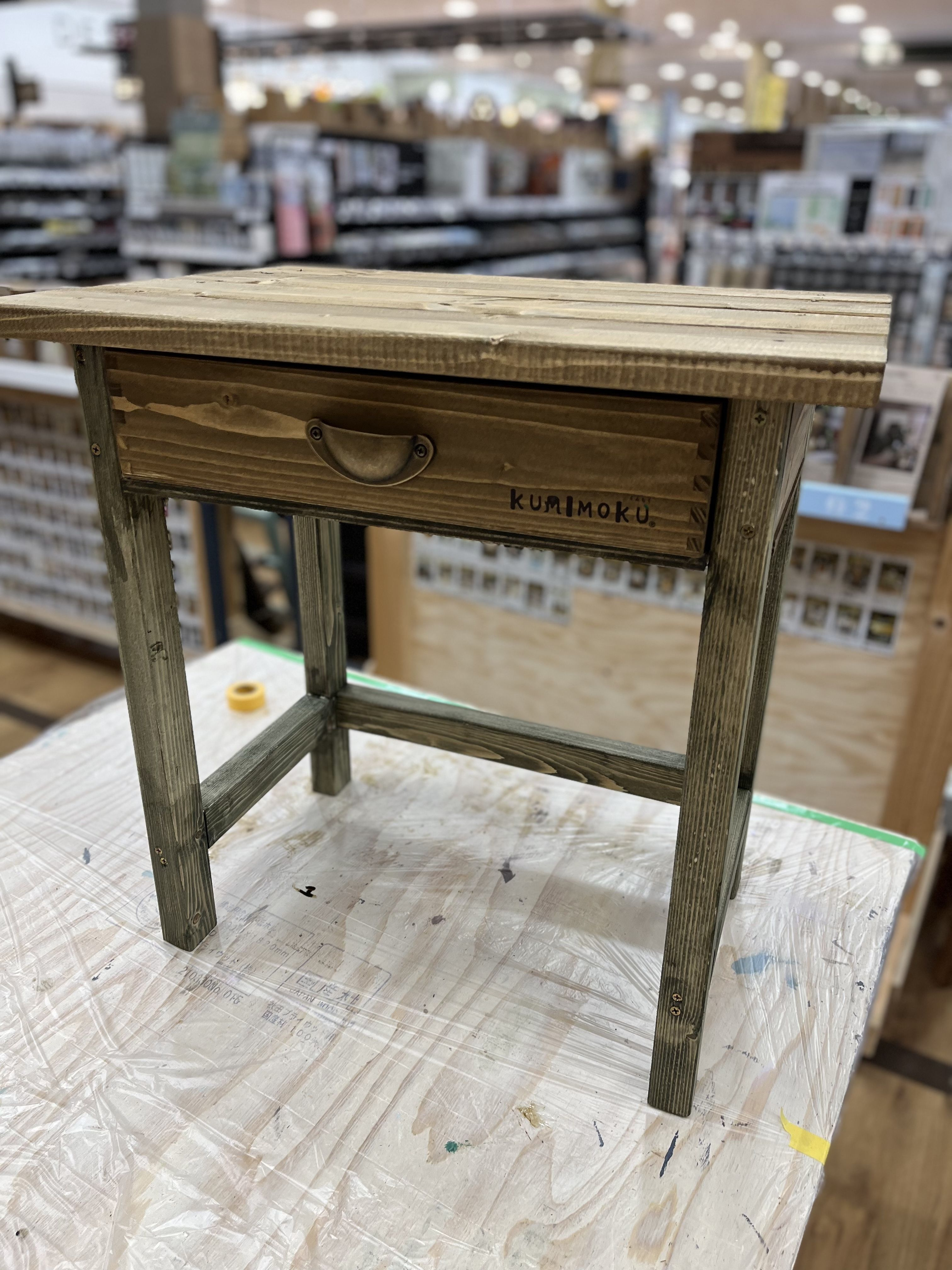 とりあえず塗料は持ち込みのソリッドカラーのオリーブグリーン🫒を天板にするか、脚にするか悩みに悩んで脚にすることにしました。