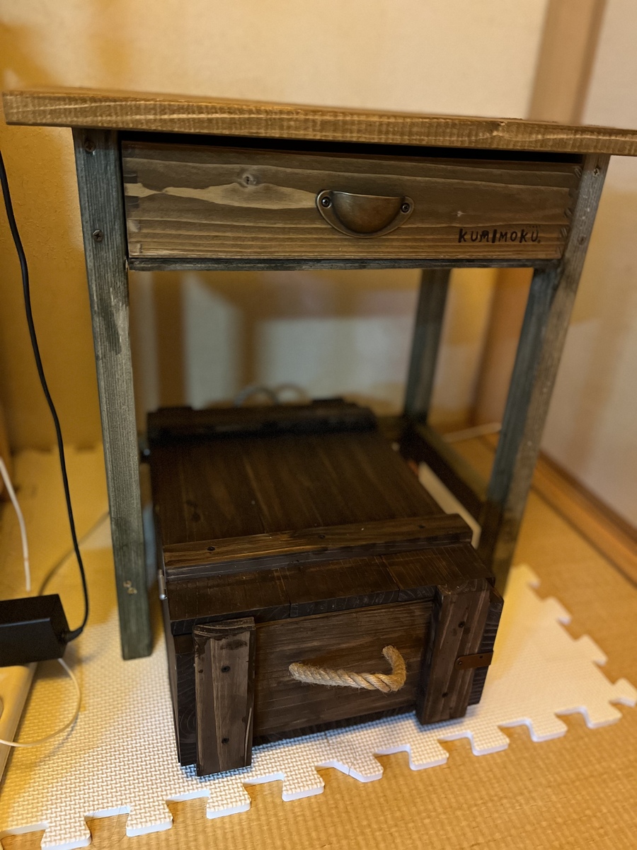 引き出しの取手は前に一段引出しの時に持ち込んだ取手がまだ一つ余っていたのでそちらを使いました。