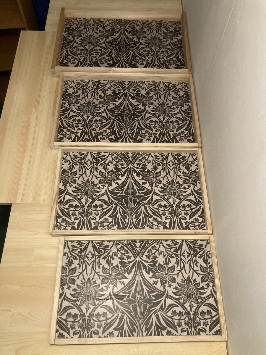 リメイクシートのパッケージを参考にしてトレイを作成してみることにし、まずは、最初に一番大きい、木箱の蓋原寸のままのを作りました