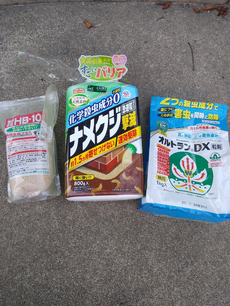 100均の使い古しのプランターをいくつかいただいていたので、花ちゃん培養土、その他武器