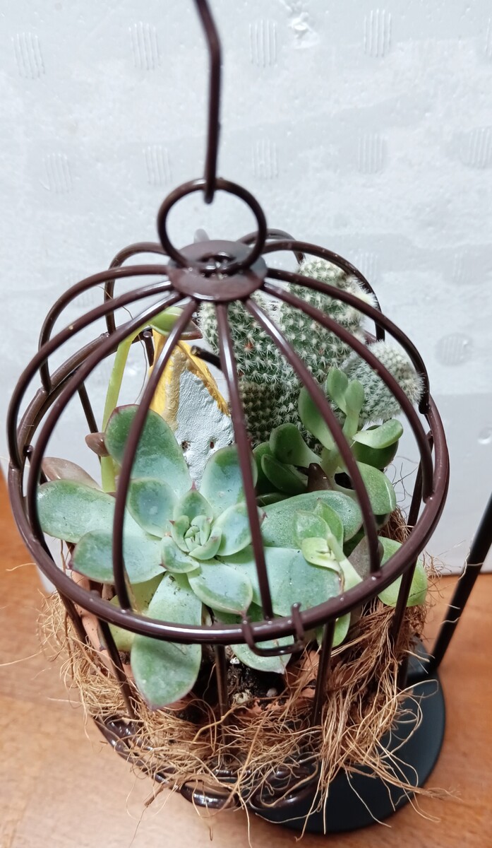 投稿を表示お洒落な鳥カゴに、可愛い多肉さんが寄せ植えされていて、素敵ですね✨