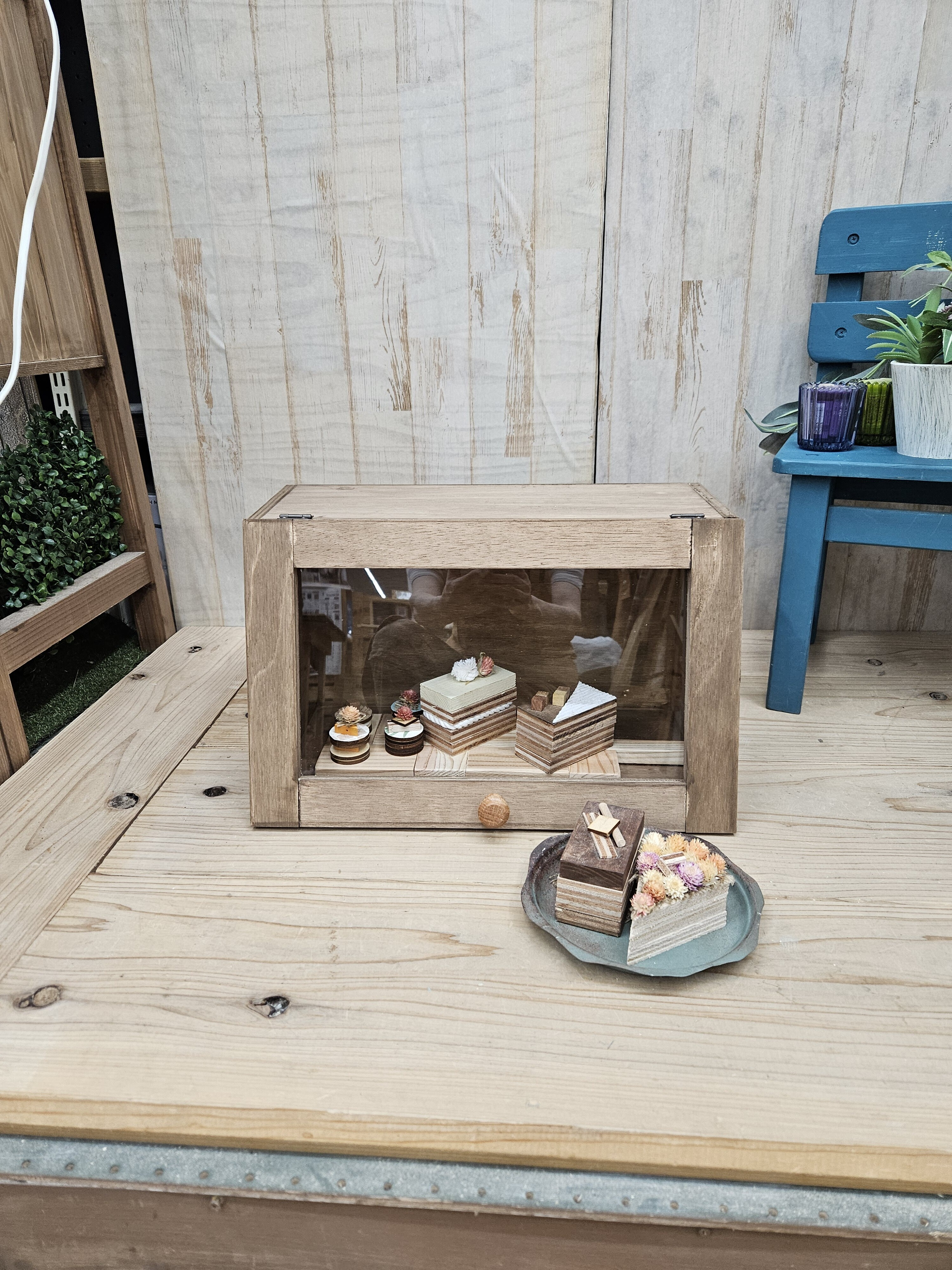 投稿を表示カフェ風ショーケースにウッドケーキの組み合わせ、すごく可愛いですよね!
