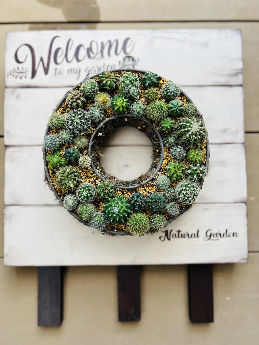 リース台、心なしか白の方がサボテンの色が鮮やかにみえますね🎶