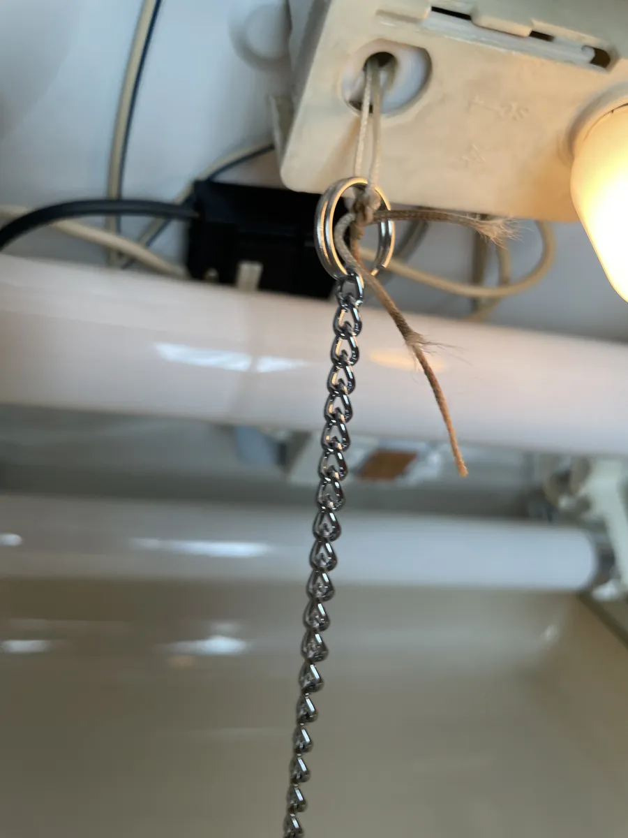 トップ > DIY > インテリア > 照明器具のスイッチ紐を細いチェーンに変更 ソラ5551 2026/01/25 16:52 照明器具のスイッチ紐を細いチェーンに変更 ↑after ↓before 以前にも切れた事が、これを見ると分かります。スイッチ紐って、真っ直ぐ垂直に引くことを常としませんと、キズがついて切れる事がありますね。 そうなると直しが結構大変なので、今のうちにと、細いチェーンに変更しました。 60㌢で168円でした。リングを付けてそこにはめる形に。↓チェーンで少し重みがあるので、必然的に真っ直ぐ引くことになるでしょうね。 いいね 共有する 共有する X LINE リンクをコピー コメントする 2 件の返信 (新着順) ミュートしたユーザーの投稿です。 投稿を表示 CHIE☆ 2026/01/25 21:04 ヒモ交換て出来るんですね✨ 中の状態初めてみました💦 実家の電気のヒモが切れそうなので交換してみたいです😊 いいね 返信する ミュートしたユーザーの投稿です。 投稿を表示 ソラ5551 2026/01/26 07:17 CHIE☆ 脚立🪜は、気をつけてー👌 いいね 返信する ミュートしたユーザーの投稿です。 投稿を表示 CHIE☆ 2026/01/26 20:38 ソラ5551 ありがとうございます😊 気をつけます! いいね 返信する ミュートしたユーザーの投稿です。 投稿を表示 はっちゃん 2026/01/29 09:48 CHIE☆ 使い心地はどうかな? いいね 返信する ミュートしたユーザーの投稿です。 投稿を表示 ソラ5551 2026/01/29 12:21 はっちゃん 普通ですよ。 いいね 返信する ミュートしたユーザーの投稿です。 投稿を表示 べるん 2026/01/25 17:18 チェーンは、そうそう切れることもなく、丈夫で使いやすそうで良いですね✨ 60㌢で168円も、お買い求めしやすいお値段ですね☺️ いいね 返信する ミュートしたユーザーの投稿です。 投稿を表示 ソラ5551 2026/01/25 18:28 べるん ありがとうございます😀 ただ、作業は結構大変でした。 脚立🪜に登って作業するんですけど、向こう脛に脚立のステップがあたる訳です。痛いんです。 脚立の向きを微妙に変えてみたり、短い時間に色々と。 脚立から落ちたら、どうなるか? そういう作業でした😅 いいね 返信する ミュートしたユーザーの投稿です。 投稿を表示 べるん 2026/01/25 20:11 ソラ5551 私は、脚立に上るだけでも緊張するので、お怪我無く作業を終えられて良かったです。お疲れ様でした😍 いいね 返信する ミュートしたユーザーの投稿です。 投稿を表示 ソラ5551 2026/01/26 07:16 べるん ありがとうございます😀 いいね 返信する