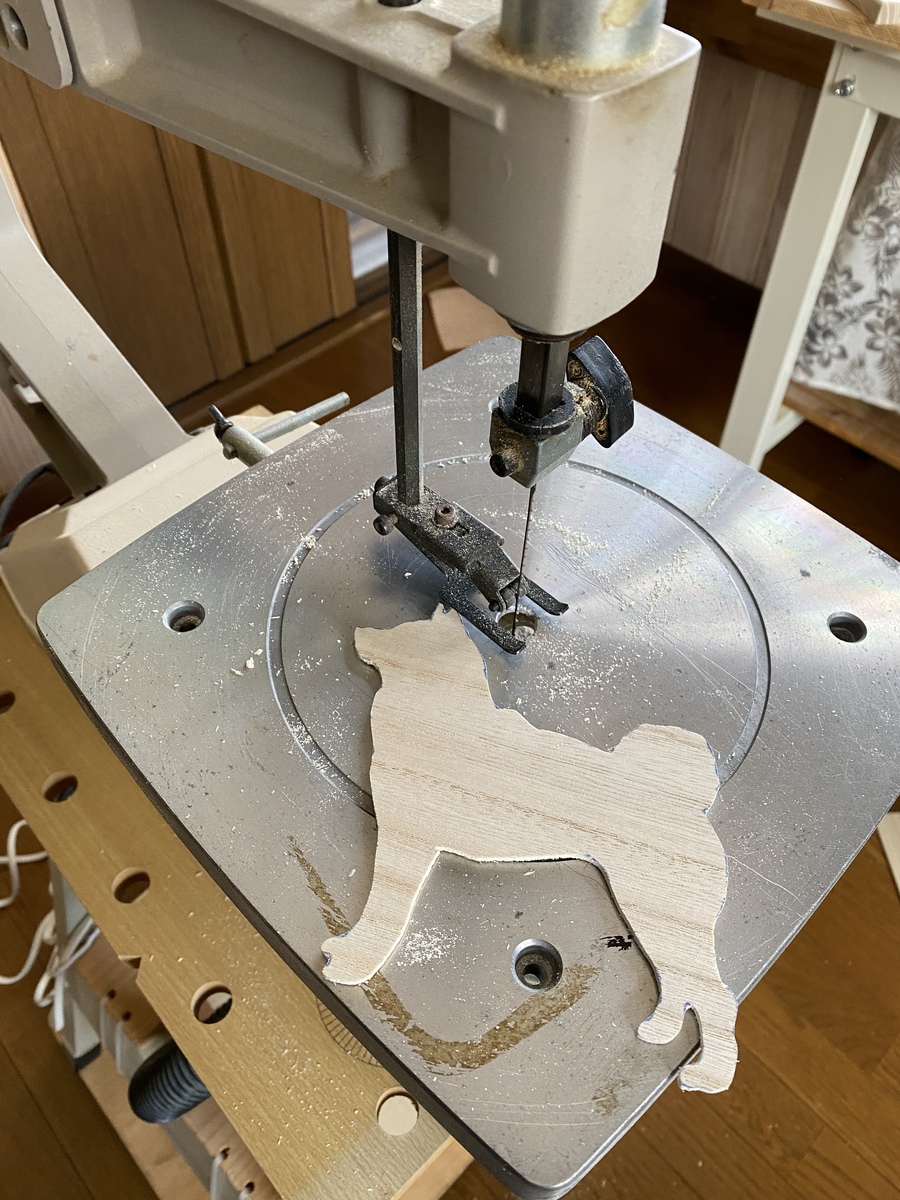 お次は柴犬シルエットを糸鋸ノコノコ。