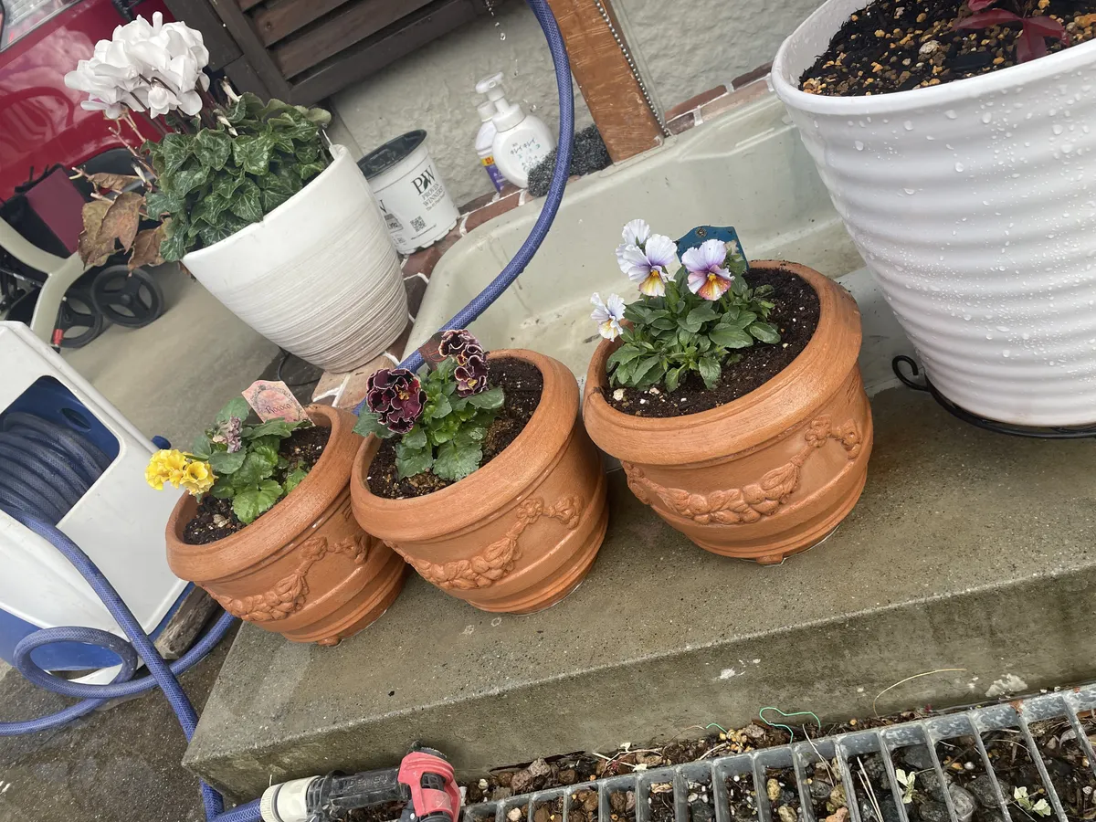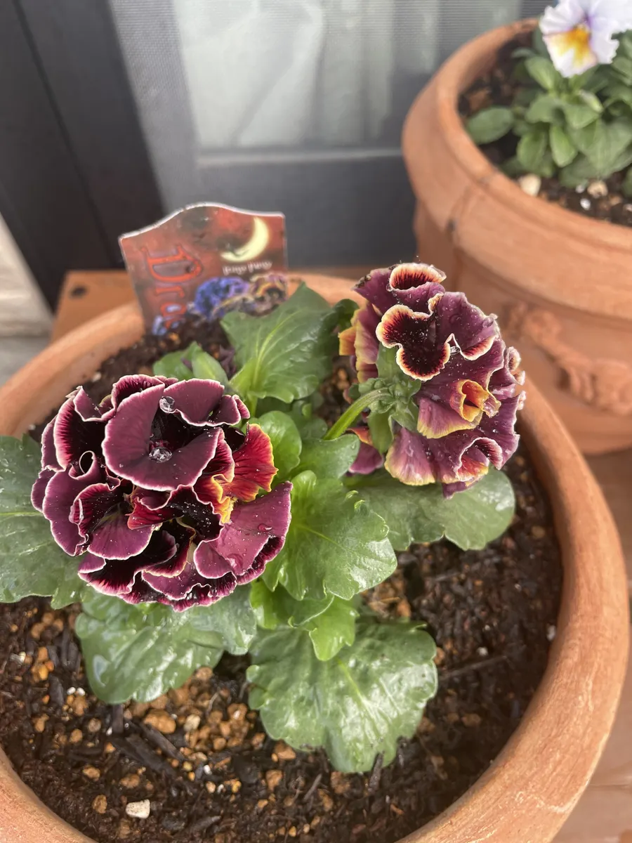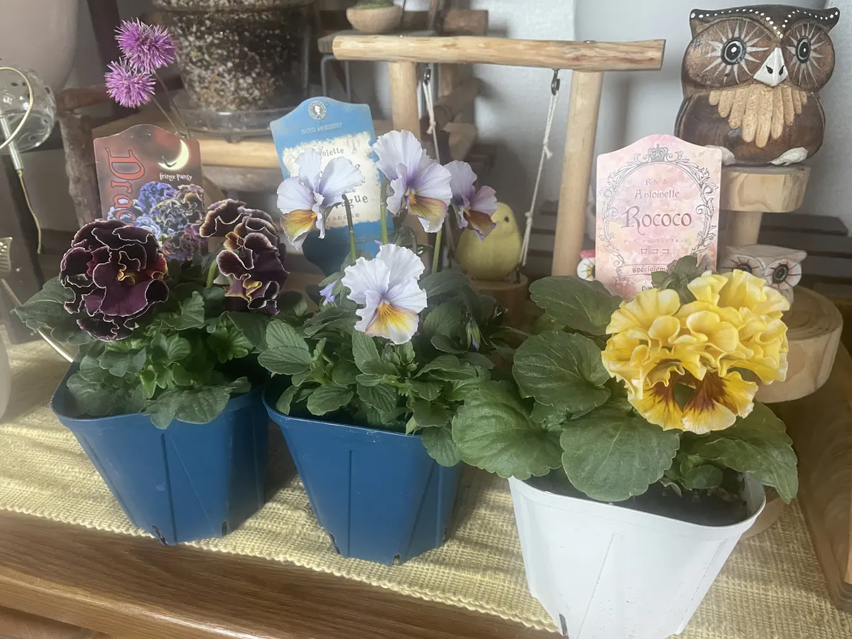 パンジー?ビオラ?の苗を3つ程買って来ました。レアなものらしいケド、ん?ドラキュラ🧛って去年も買ってた気がする。。。
