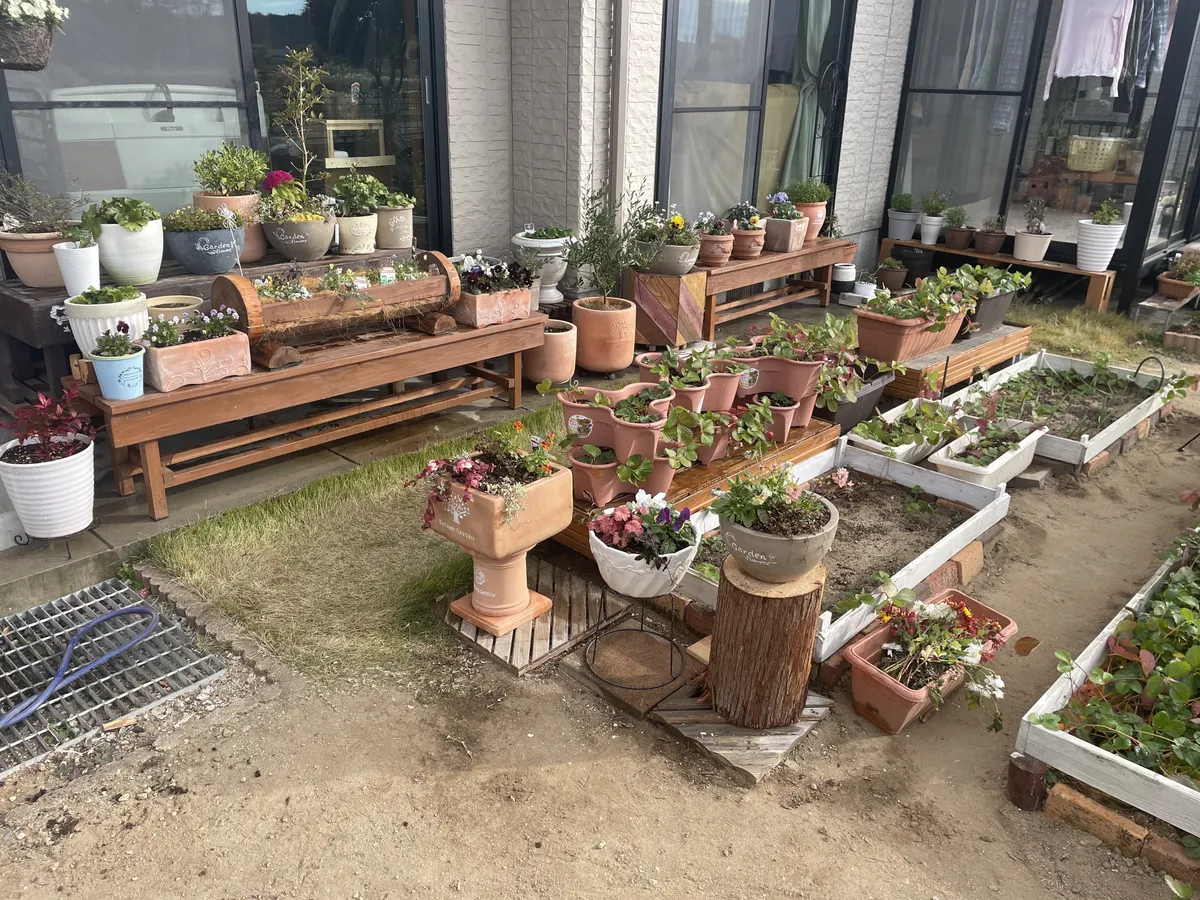 他の鉢をどかしてこちらの素焼き鉢だけのコーナーになってますね。
