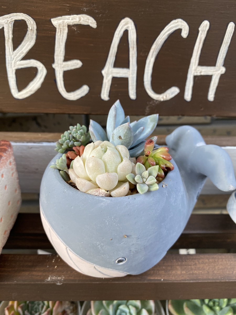 🐳くじらさん、鉢と多肉の色も考えて寄せてるのでとても可愛いですね😍💕