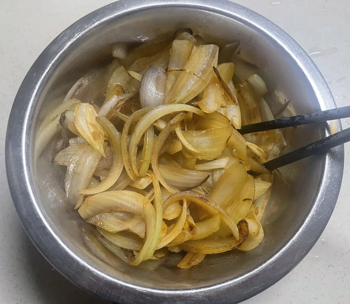 焼き目が付いたら一旦ボウルに取り出しといてぇ〜🧅➰🥣✨
