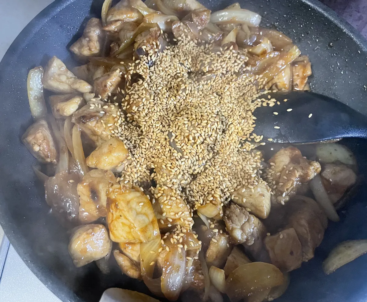 あ、金胡麻とか入れちゃおかぁ〜🟡➰🍳✨