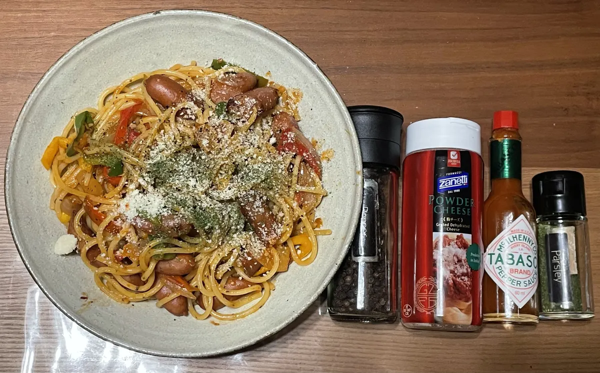 ・前日に作った阿呆ほどウインナー入れた久々ナポリタンの繋ぎもの😋🗓️🍝🌭✨
