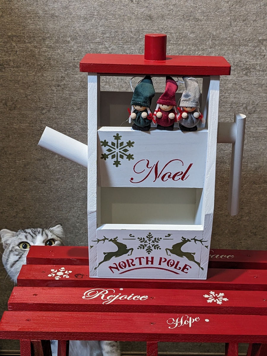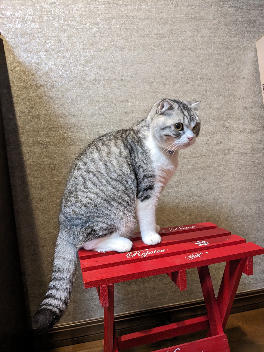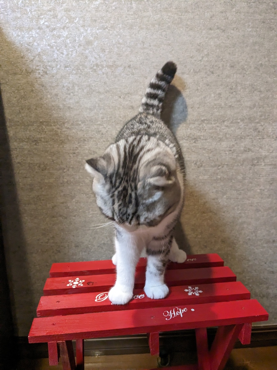 投稿を表示素敵ですね。クリスマスカラー&ステンシルもすごく綺麗ですね🎄レオたん、ガタツキや色柄をチェック!合格のようですね🈴すっきりスタンドもどれどれと…👀出ている棒(注ぎ口)が気になるニャ♪そこには乗れないか⤵️