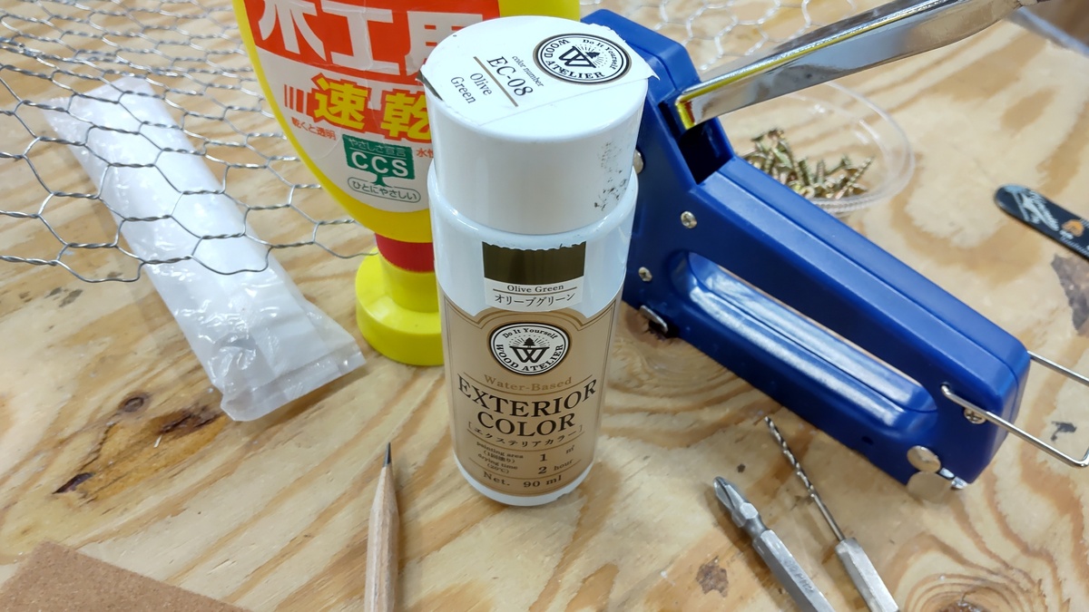 途中、ワイヤーネットがズレないようにアドバイザーさんに見守られながら、タッカー終了ーーー<( ̄︶ ̄)>エッヘン🎵