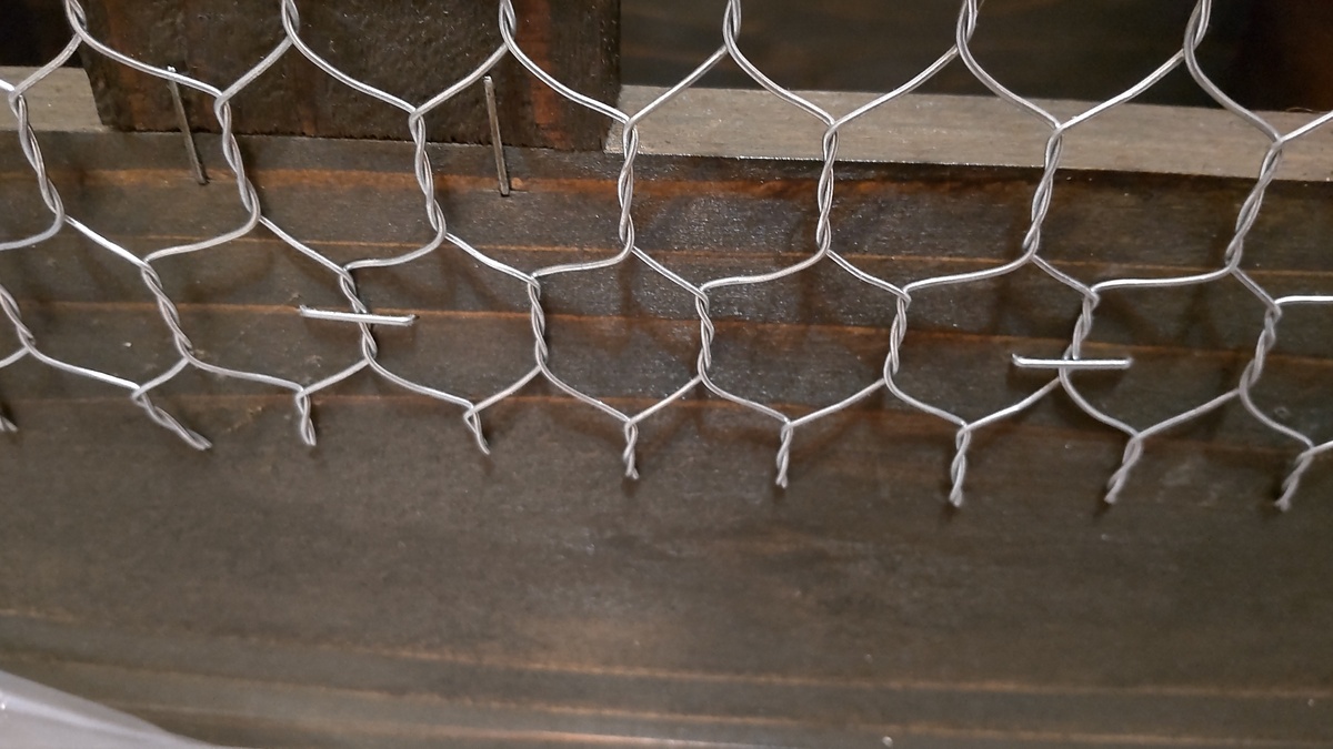 乾燥が終わると、ワイヤーネットと屋根部の取り付けです(。ゝω・)ゞ