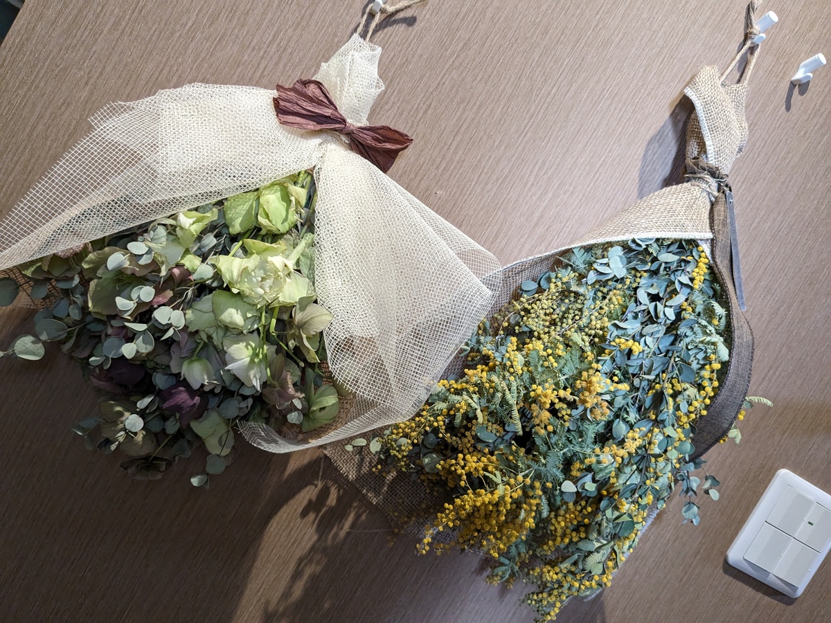 そうそう、クリスマスローズのスワッグは、葉っぱ全部取るんだったわ