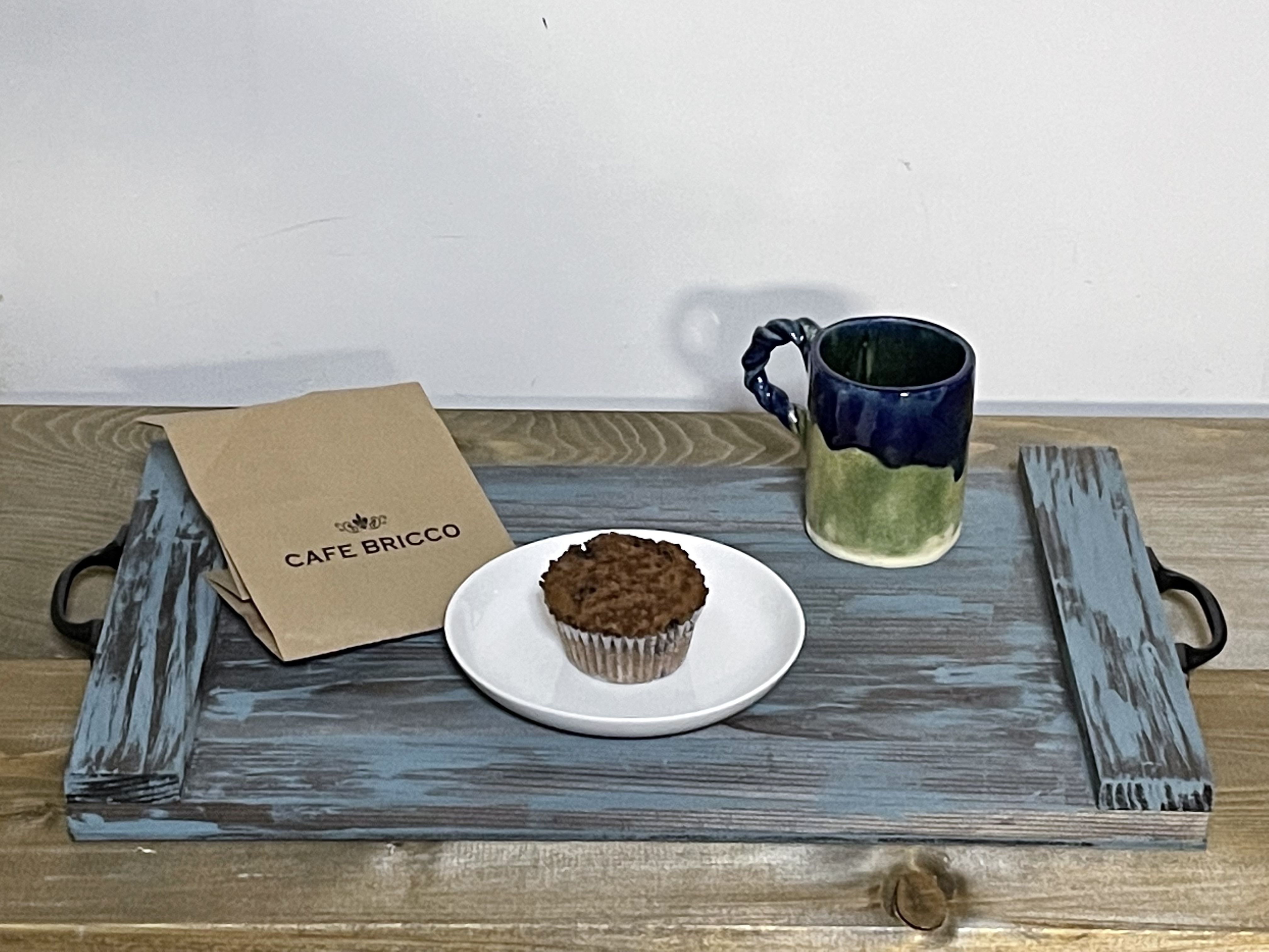 トレイに乗せてあるマグカップもカッコいい色合いですね😁