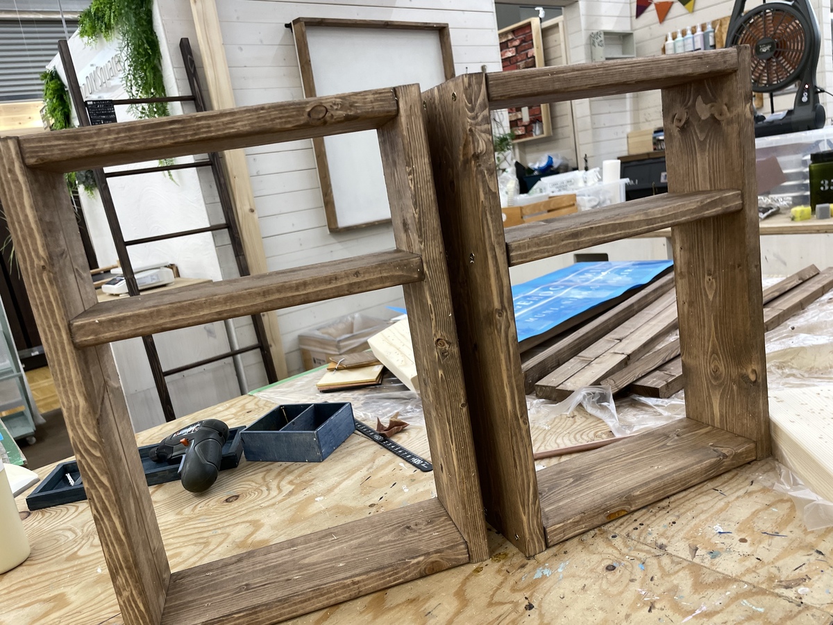 次にベンチの脚の組み立てです!
