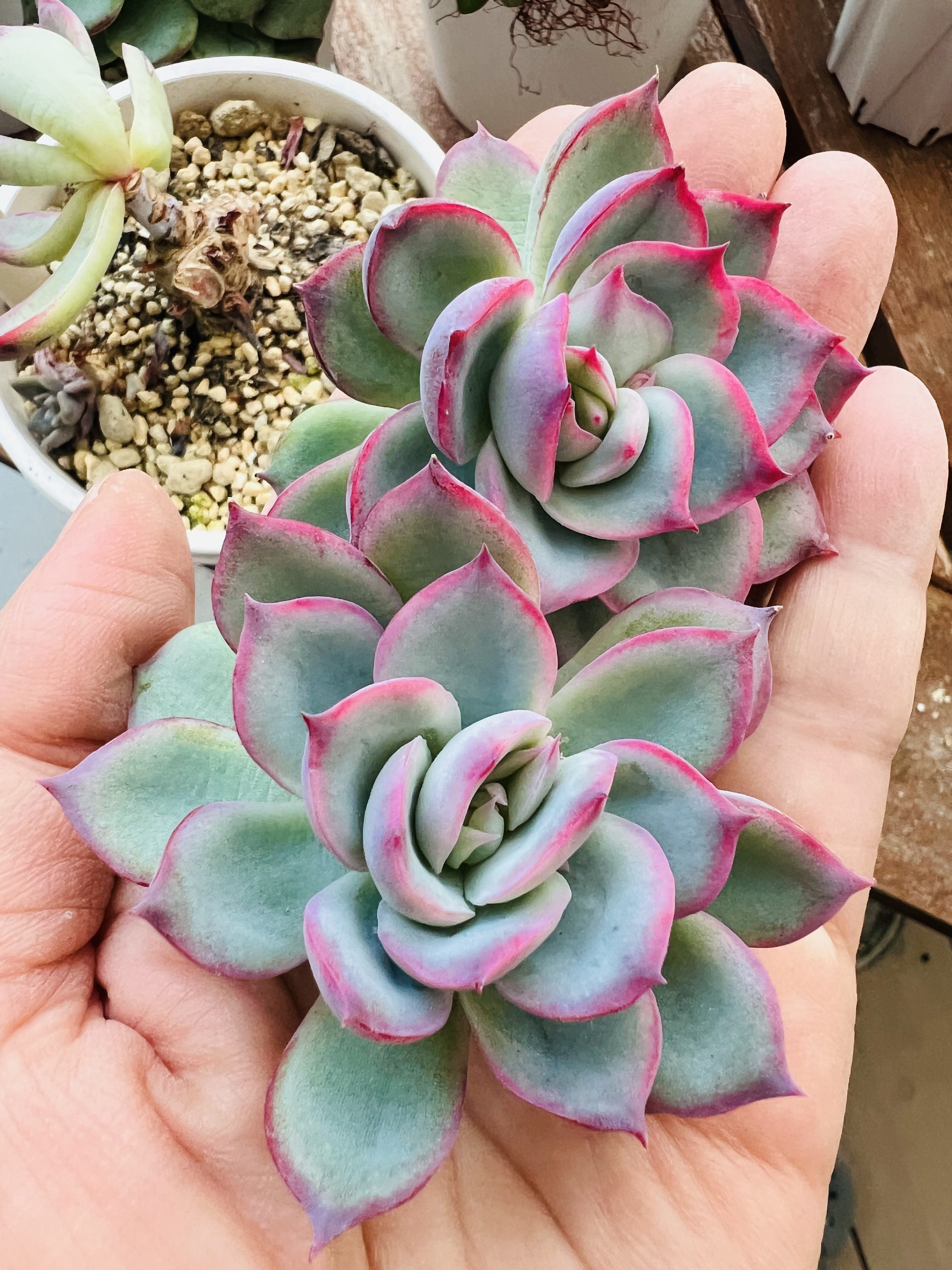 トップ > グリーン > 多肉植物・サボテン > シルエットちゃん♡ さくら♡ 2025/12/08 17:09 シルエットちゃん♡ シルエットちゃんをチョンパ✂️ いいね 共有する 共有する X LINE リンクをコピー コメントする 3 件の返信 (新着順) ミュートしたユーザーの投稿です。 投稿を表示 ぱんだ 2025/12/09 06:28 この時期チョンパしても子供たち出るの? いいね 返信する ミュートしたユーザーの投稿です。 投稿を表示 さくら♡ 2025/12/09 07:33 ぱんだ 肥料を置いといてあげると意外と出るけど、大きくなるのは春かなあ🤔 いいね 返信する ミュートしたユーザーの投稿です。 投稿を表示 non 2025/12/08 20:23 可愛い💞 あらっ💦🏡のシルエットどっかに遠征してます🤣 いいね 返信する ミュートしたユーザーの投稿です。 投稿を表示 さくら♡ 2025/12/08 20:33 non うちも下の写真のもうひとつの子は成長点が行方不明です🤣 いいね 返信する ミュートしたユーザーの投稿です。 投稿を表示 パール 2025/12/08 18:07 薔薇みたいで可愛いですね😊🎶 いいね 返信する ミュートしたユーザーの投稿です。 投稿を表示 さくら♡ 2025/12/08 18:50 パール このピンク色🩷が可愛くって🥰 いいね 返信する