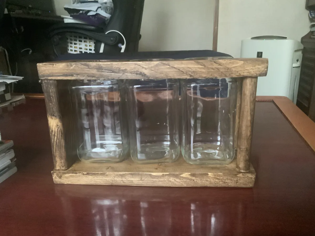 以前WSに参加したホールソーで瓶ホルダーを思い出して作りました。