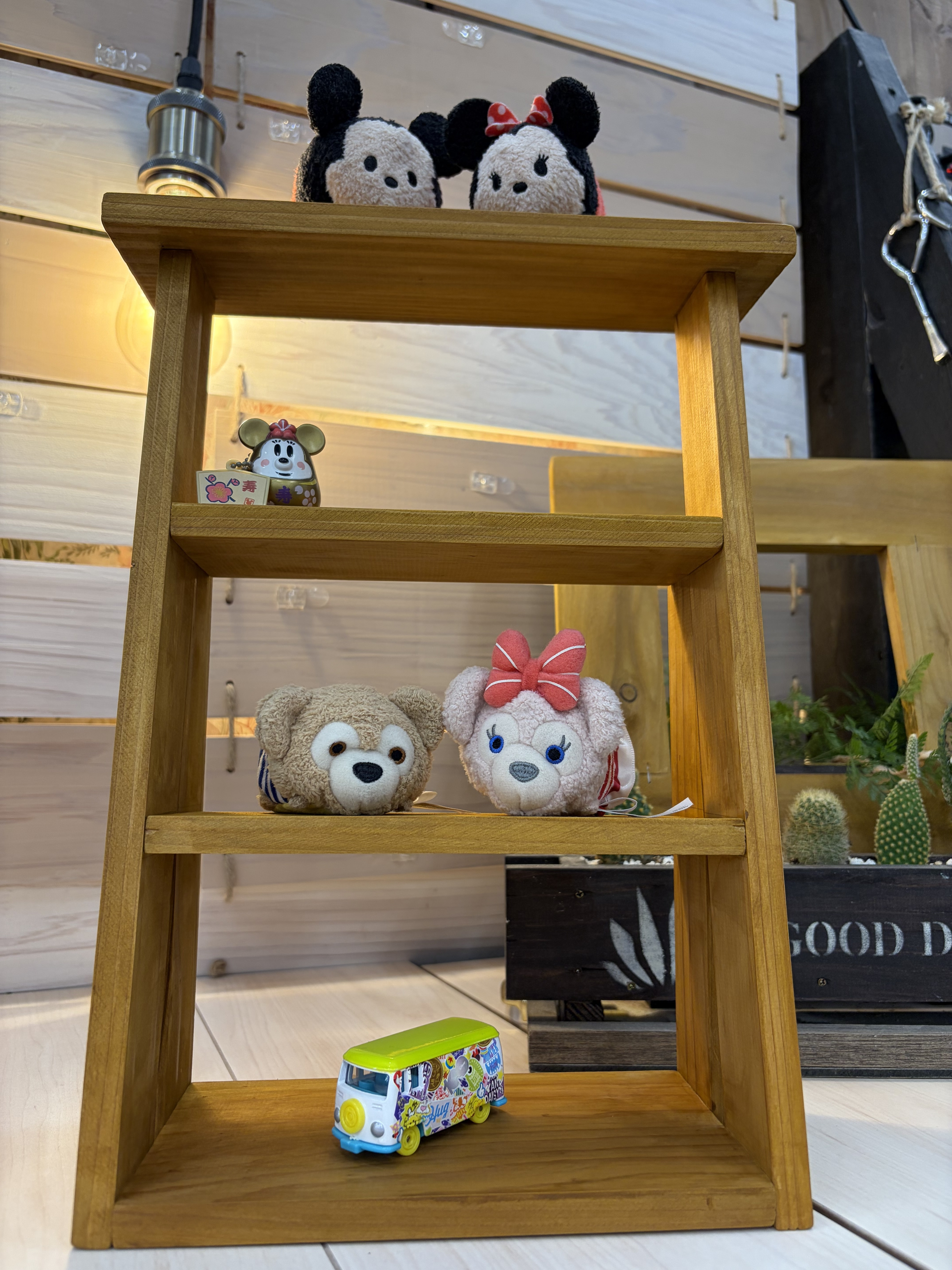 私もダッフィーフレンズ7種類のツムツム集めたので、並べたい〜😁小物を飾るのにいい感じですよね🤗