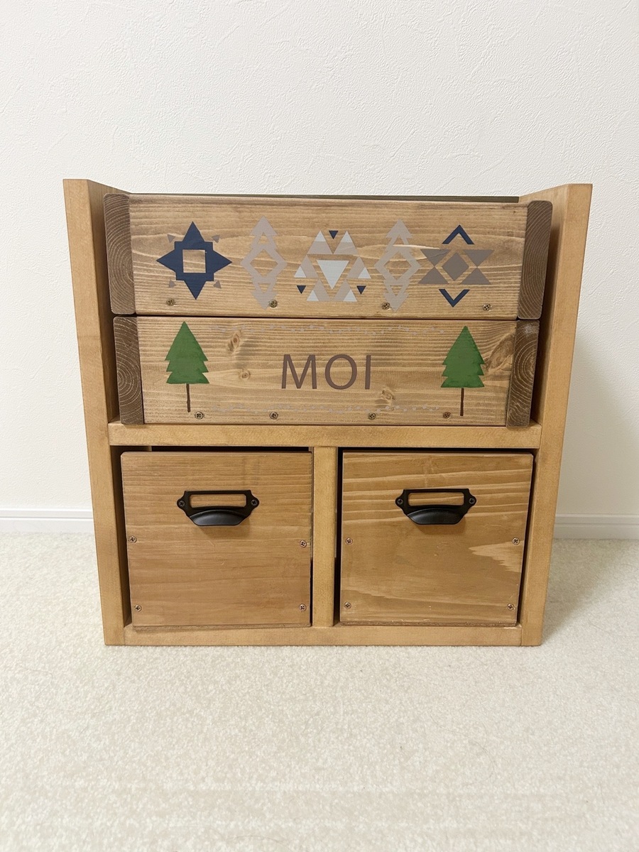 急に追加された下の段の箱2つについては、以前投稿したものを参考に。端材で作った箱です。※特に作り方は記載していません。