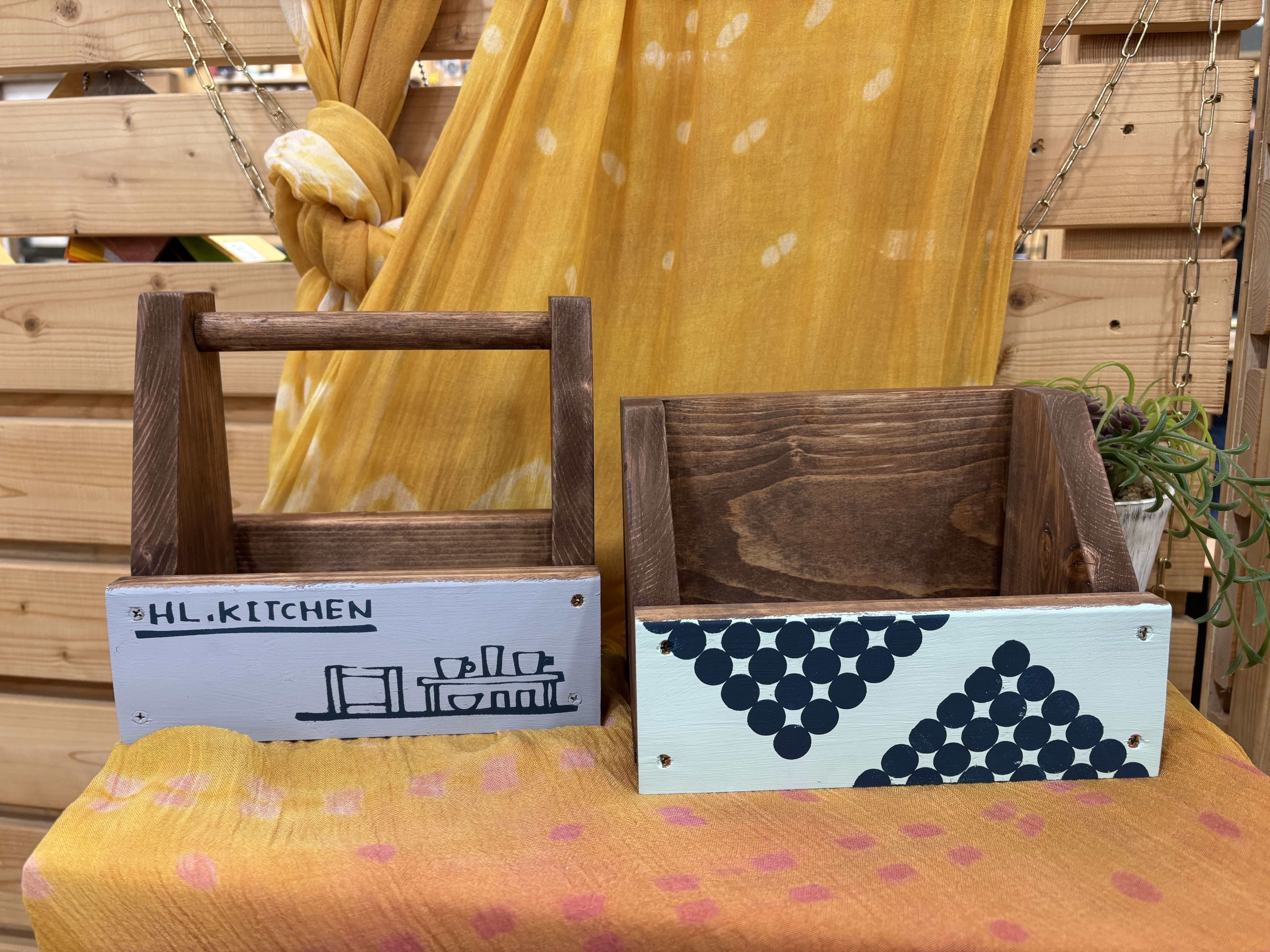 塗料の色やステンシルデザインが違うからそれぞれイメージが全然違ってみえます😄💕