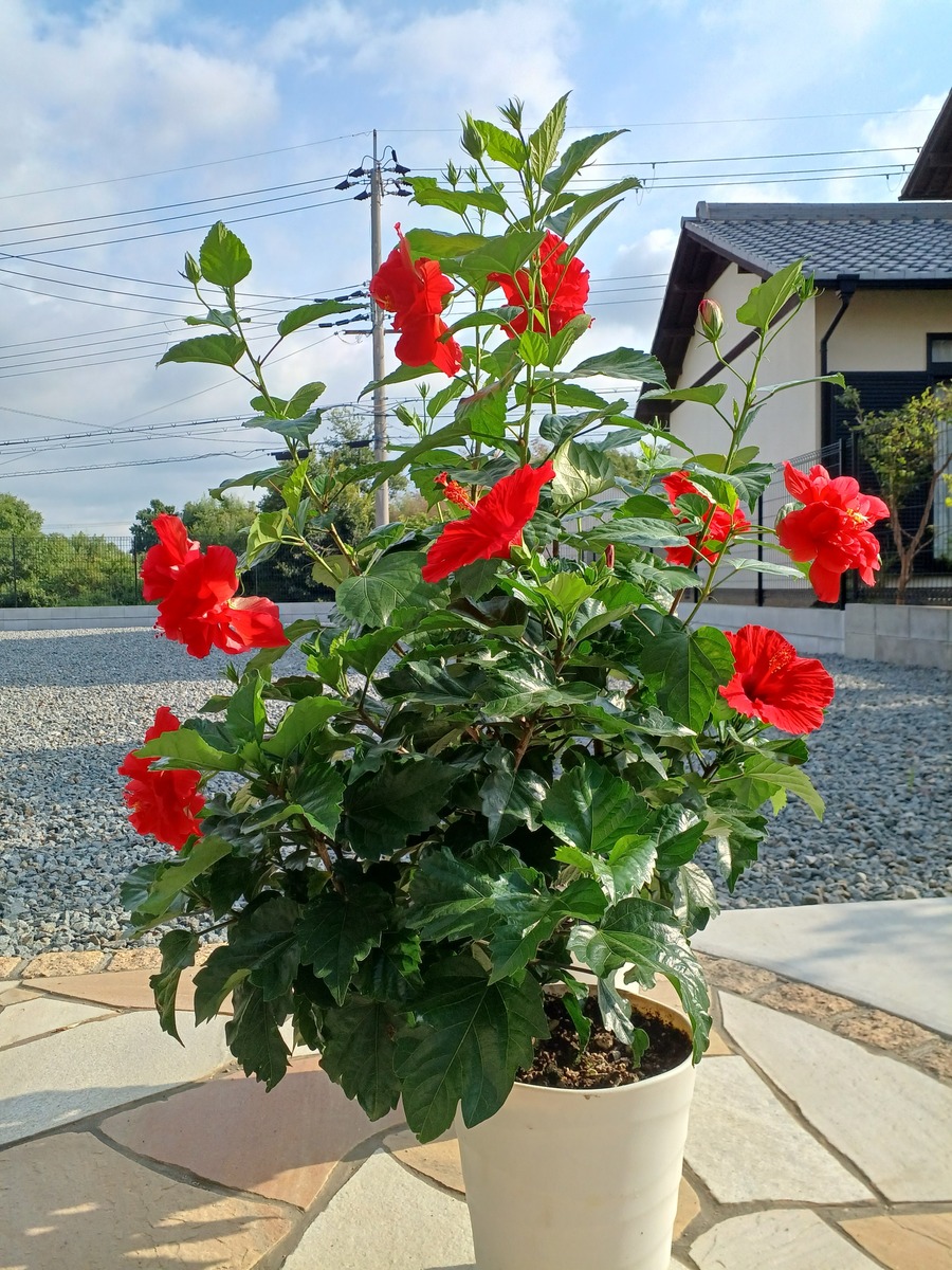 私の今年のグリーンWSの寄せ植えの赤ハイビスカスは10輪くらいしか咲かなかったんです😆ぎゅうぎゅうだから植え替えするといいのかしらね?
