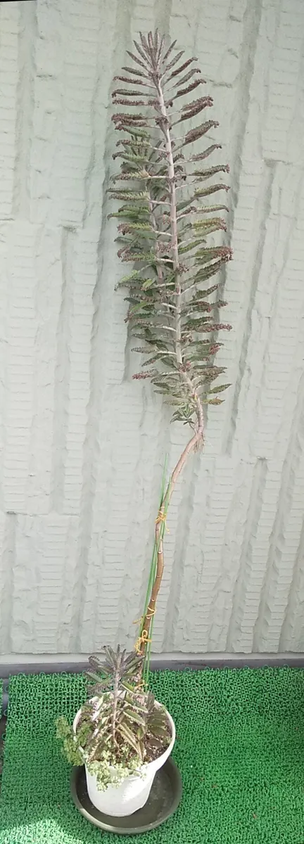 親株の背丈は139cmになり、壁で支えているので、今回 は、親株の剪定と鉢の整理をしました。