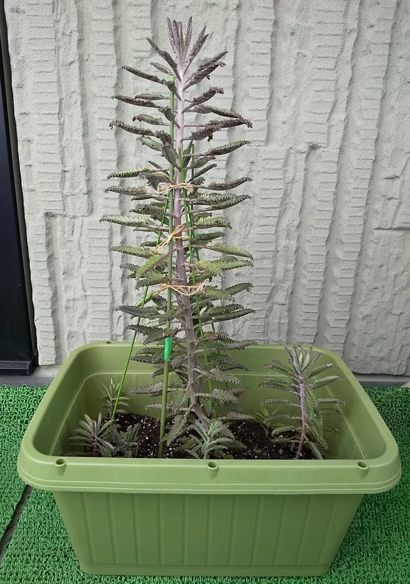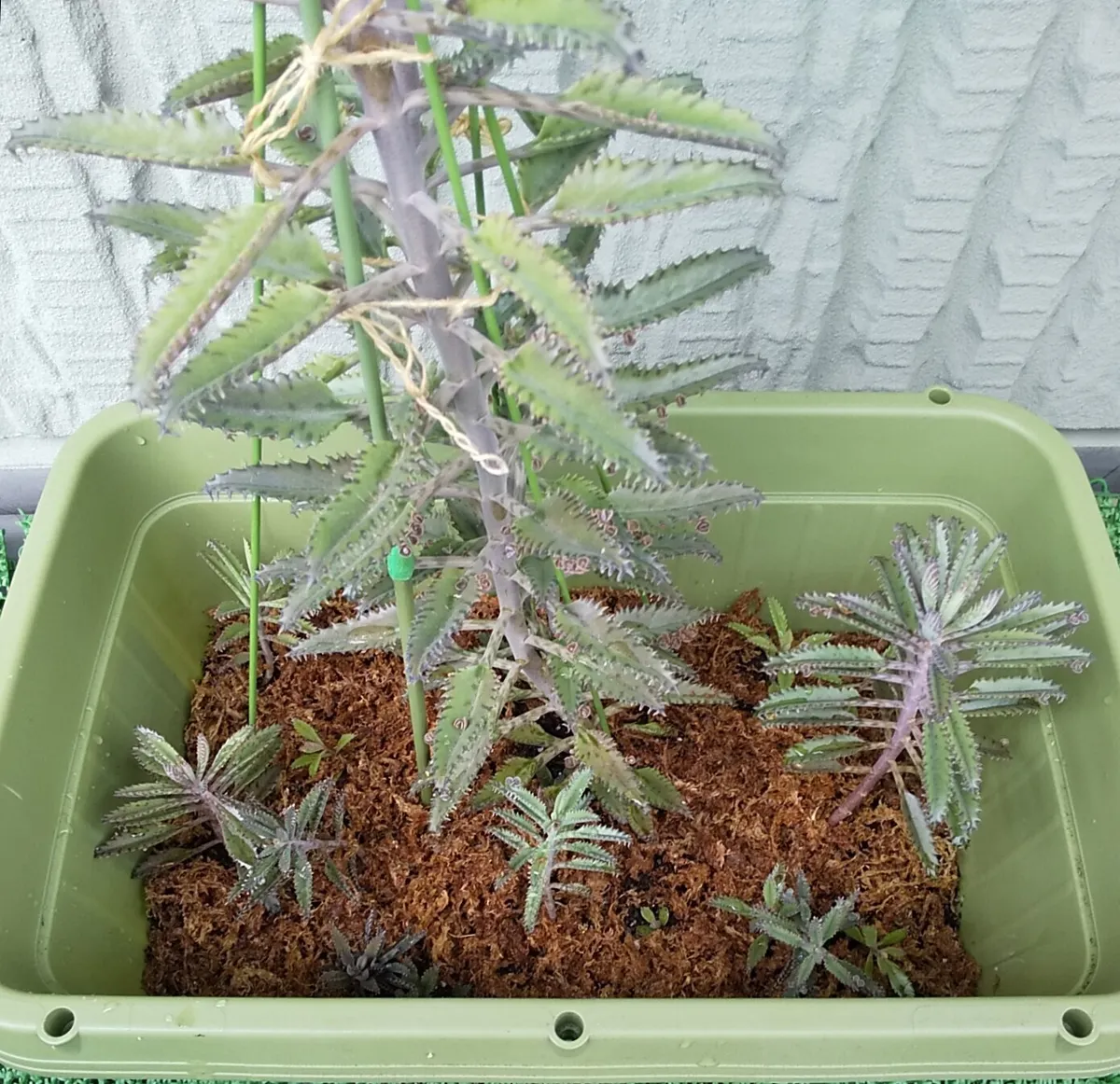 2.背丈があり、倒れやすいため、茎・葉の部分をガード出来る様に、また、葉から赤ちゃんが、ポロポロ落下するので、深型・広めの菜園コンテナを選択しました。