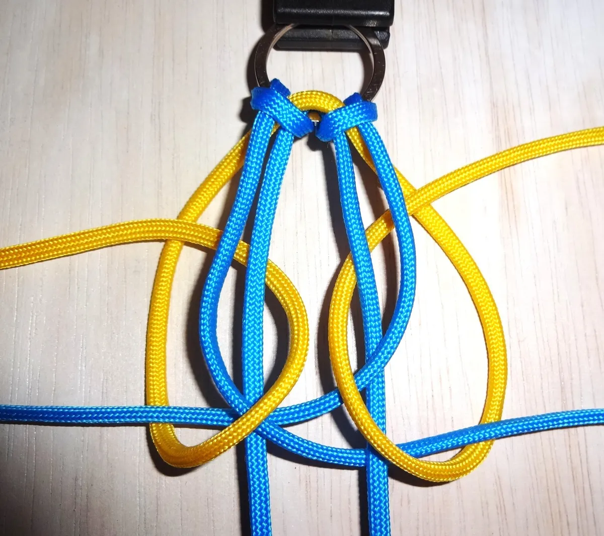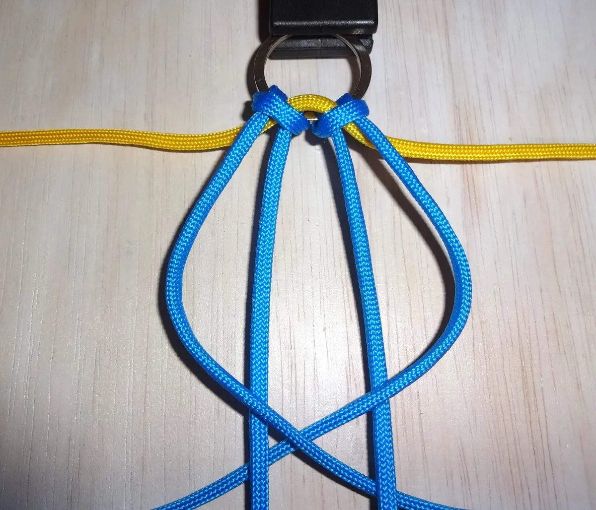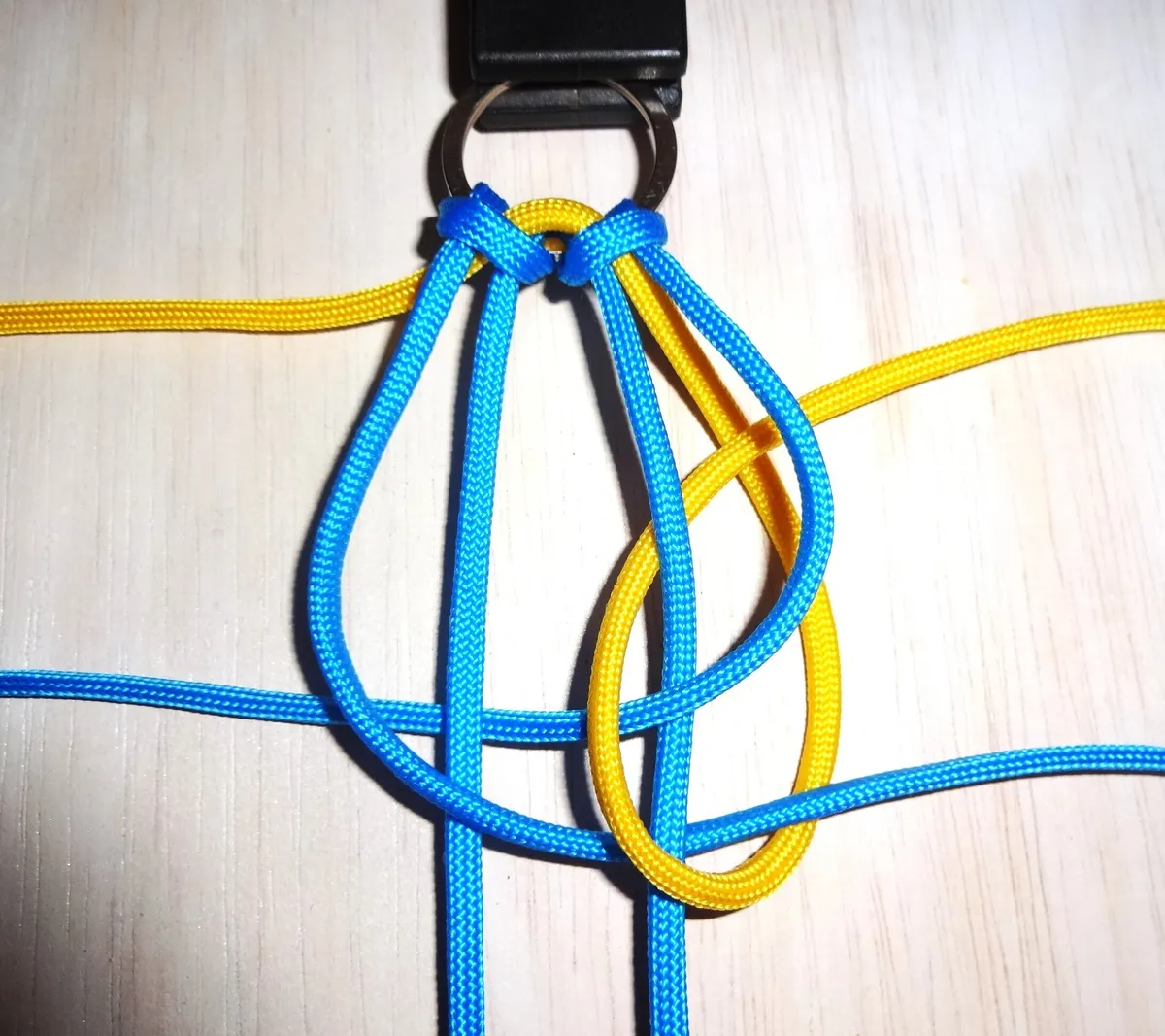 ↓ 黄を青の下から回して 図の様に通します。