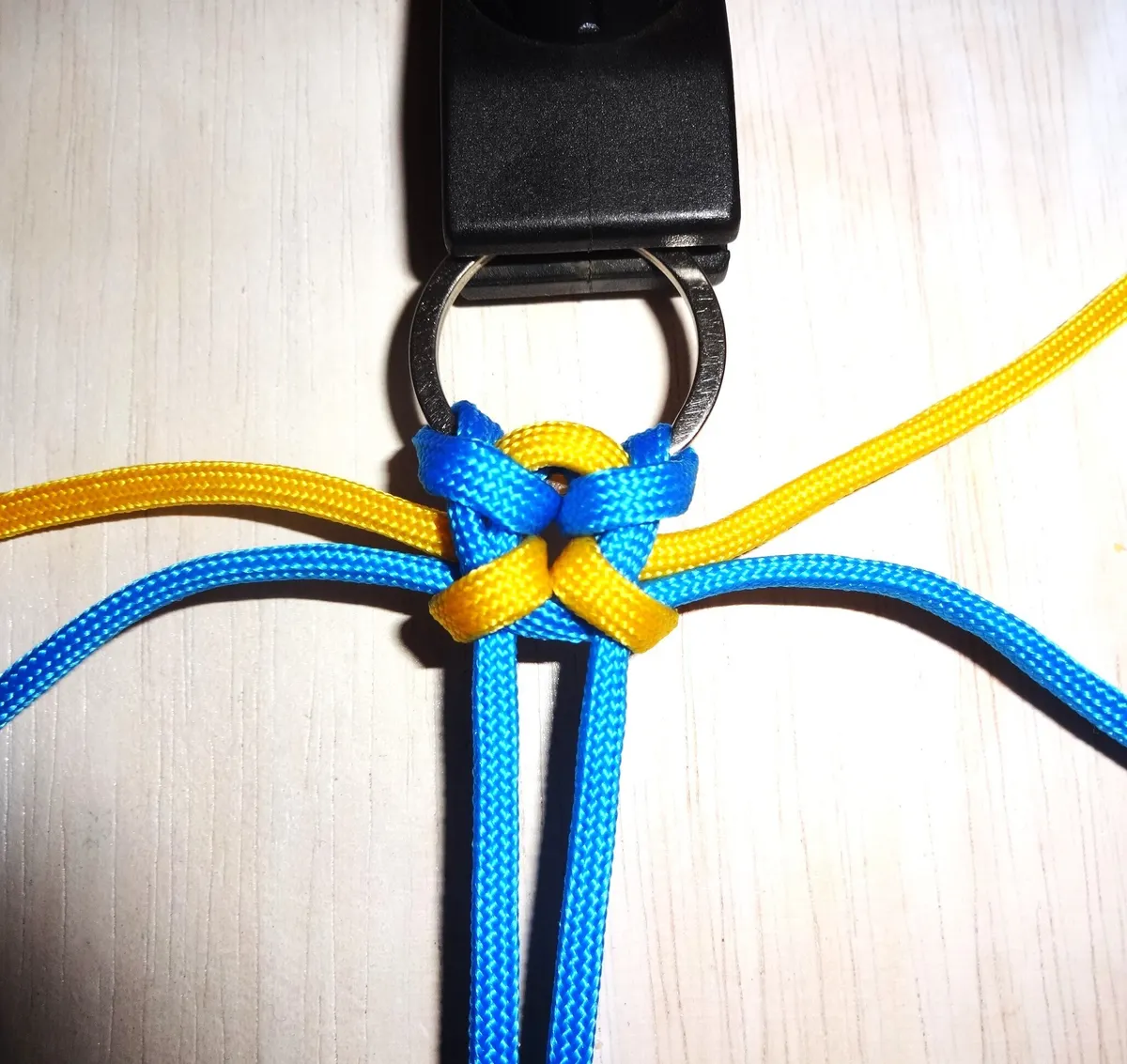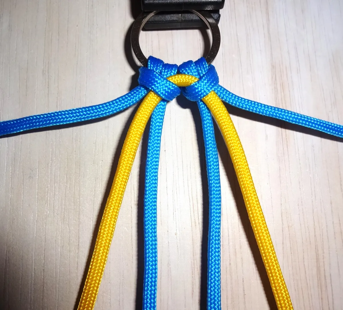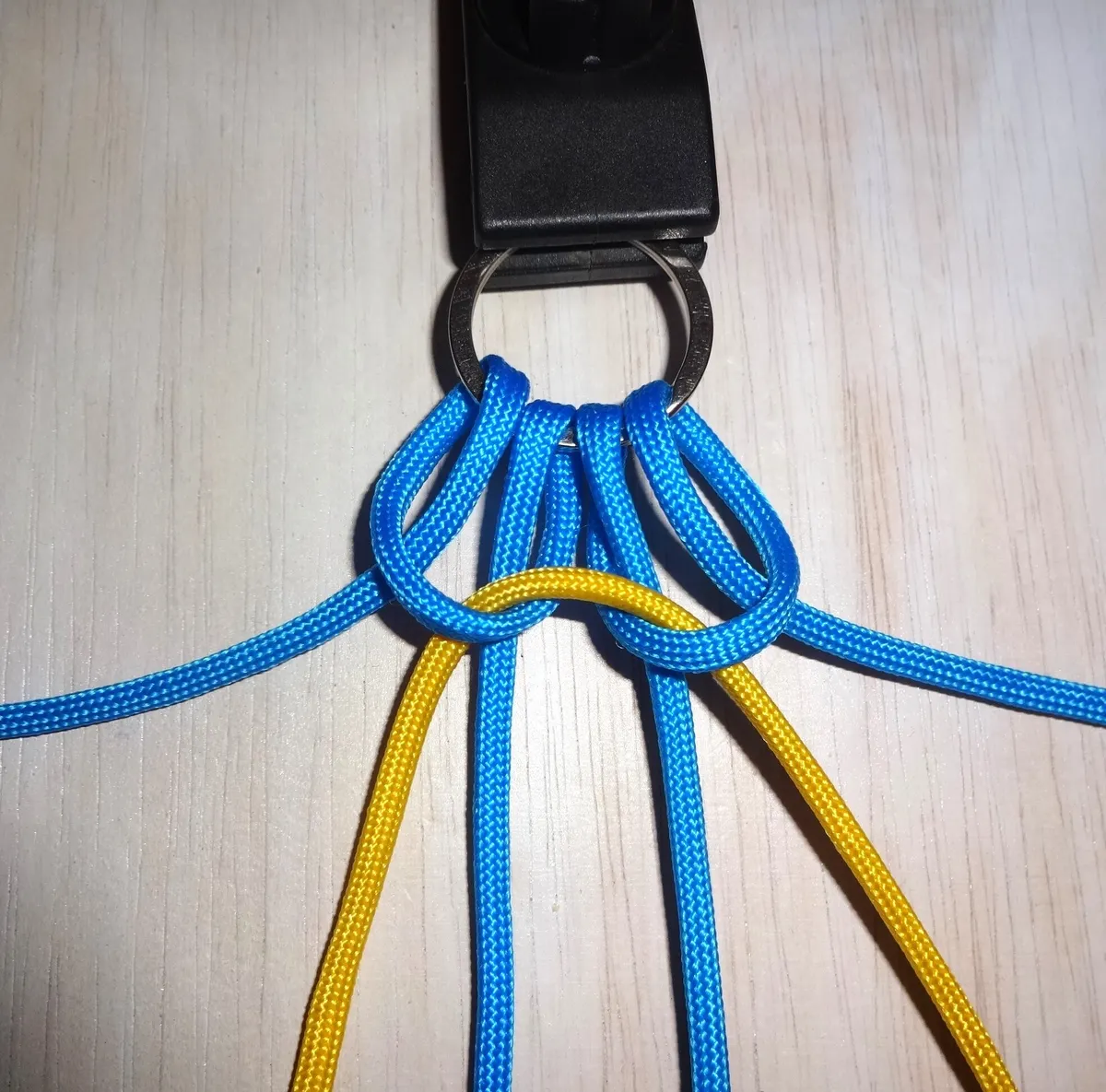 ↓ 黄を青の下から回して 図の様に通します。