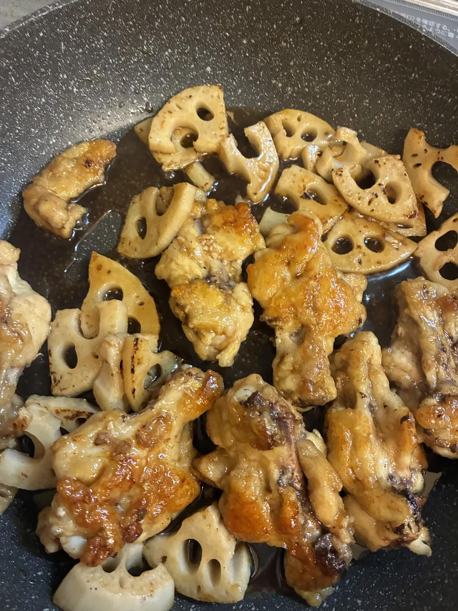 手羽元と蓮根のニンニク甘辛焼き