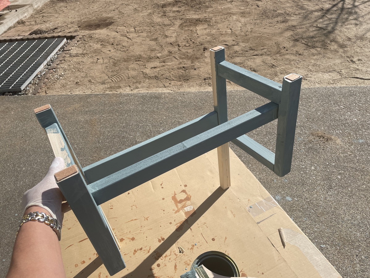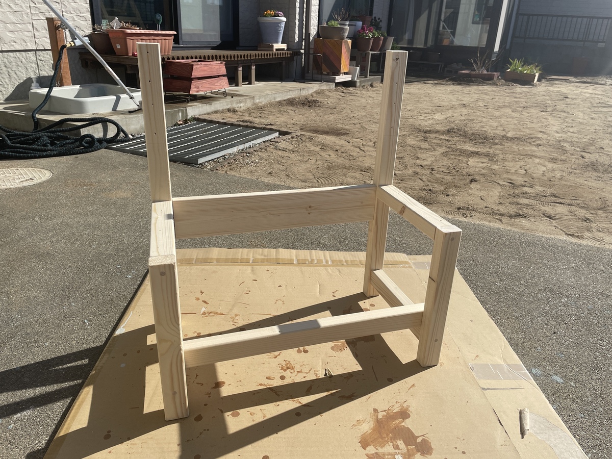 初めは骨組みを裏返しをして底の部分から塗装開始です。