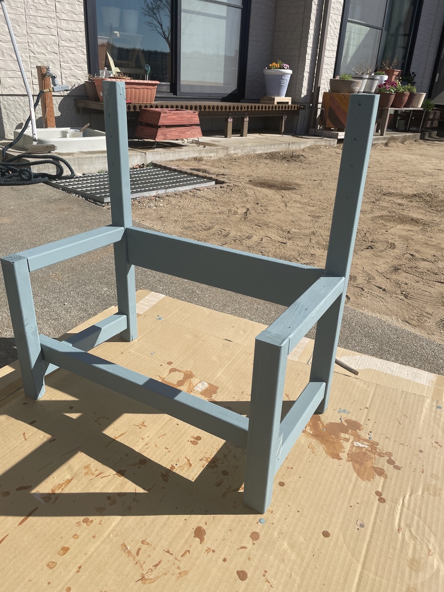 この骨組みをブルー系に塗装をします。骨組み塗装は水性塗料です。