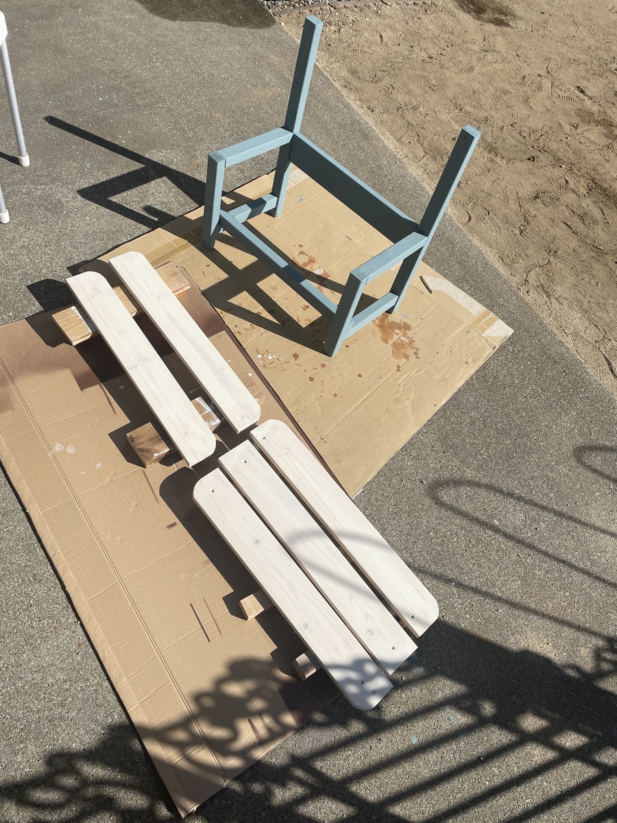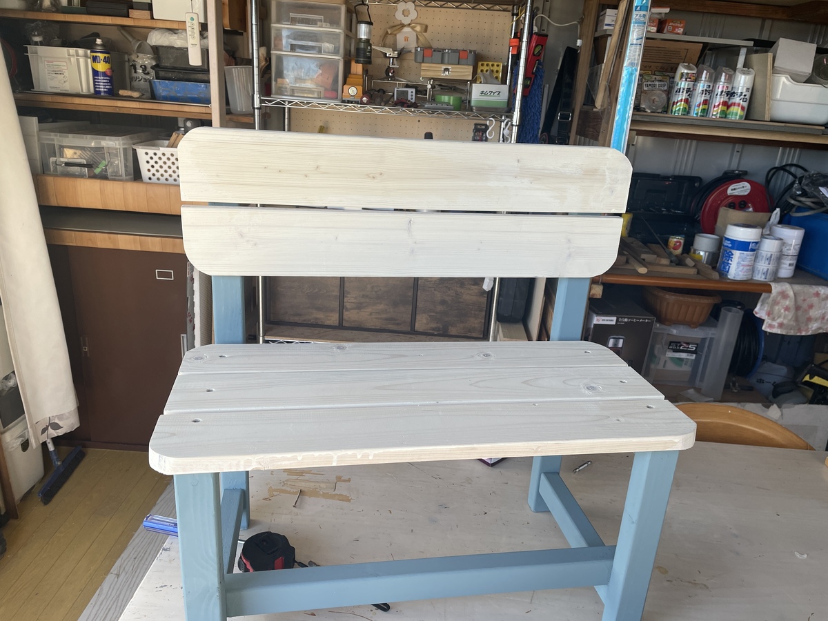 先日作成をしましたフラワーベンチのお化粧直しをしてみました。