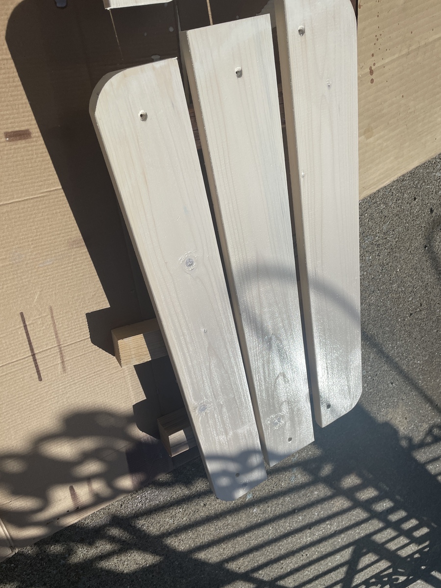 組み立てたままでの塗装でも良かったのですが今回は骨組みと板の部分を色分けしたかったので
