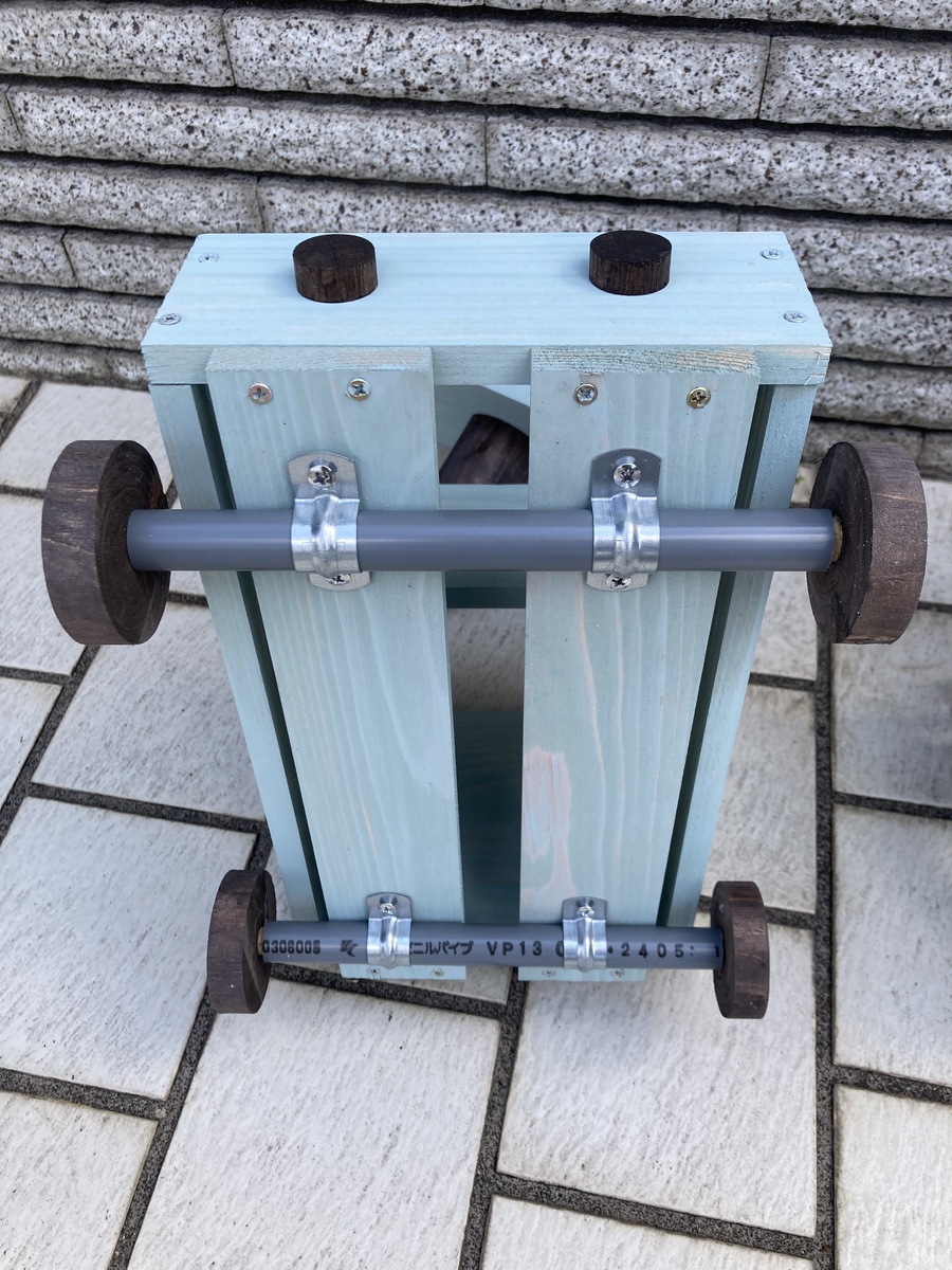 トップ > ワークショップ > 汽車型プランターカバーのアレンジ まるた 2024/08/20 15:47 汽車型プランターカバーのアレンジ 汽車型プランターカバーの車輪が回転する様に、アレンジ致しました。 ▪️部材 ①VP管 13×0.5M 2本 ②サドルバント 13A 5P 2個 ③丸棒 約 910×12φ 1本 ▪️作業 ①プランターカバーの底にサドルを仮固定 ②VP管(長さ20㎝)をサドルに入れ固定 ③片側の丸棒(21㎝)に車輪をボンド、ビスで固定 ④車輪を付けた丸棒をVP管に入れ、もう一つの車輪をボンド、ビスで固定 ⑤車輪のビス隠しの為、長さ5㎜の丸棒をカットしてボンドで固定 いいね 共有する 共有する X LINE リンクをコピー コメントする 1 件の返信 (新着順) ミュートしたユーザーの投稿です。 投稿を表示 ジャック 2024/08/20 17:51 ステキなアレンジですね。ここにお花を入れたら、もっと可愛いですね〜 車輪付きで、好きなところにコロコロと移動したり、、楽しさもありですね。 いいね 返信する ミュートしたユーザーの投稿です。 投稿を表示 まるた 2024/08/20 22:28 ジャック コメントありがとうございます😊 多肉植物🪴か?お花💐 入れたいと思います。 いいね 返信する