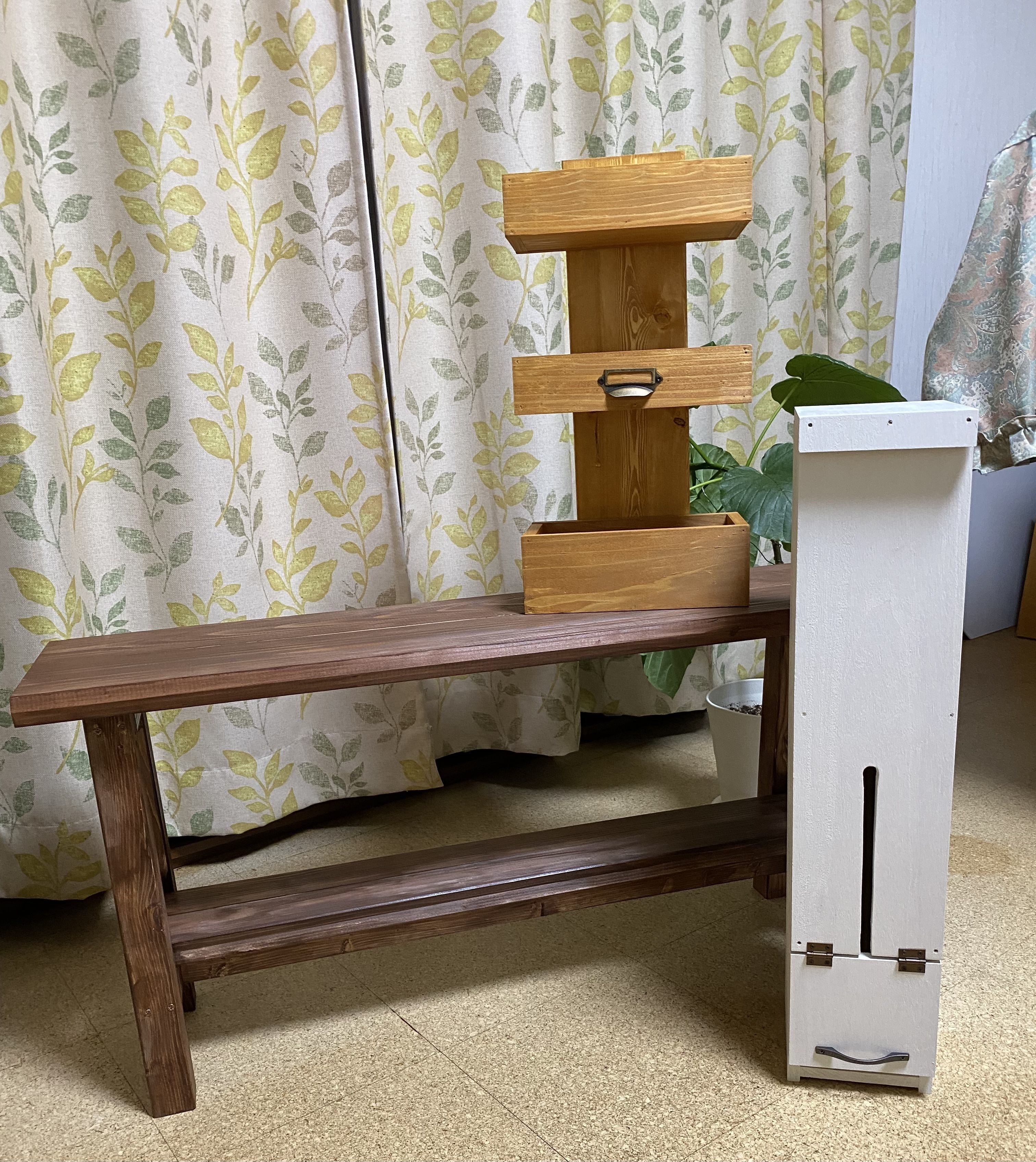 トップ > その他 > 今週の作品 Toko 2022/07/21 19:37 今週の作品 今週はこの3点を作りました。全部違うお店ですが、少人数でのんびり楽しく作る事ができました。 気持ちが落ち着いていたのか、自分なりには丁寧に取り組めたかなと思います。 色もそれぞれで統一性はありませんが、全て実家に置く予定で作りました。 設置をイメージして作ったのですが、さてどうなりますか😆 いいね 共有する 共有する X LINE リンクをコピー コメントする 6 件の返信 (新着順) ミュートしたユーザーの投稿です。 投稿を表示 たまちゃん 2022/07/22 00:15 ベンチ作られたんですね。👍👍👍👍 いいね 返信する ミュートしたユーザーの投稿です。 投稿を表示 Toko 2022/07/22 13:03 カフェ板を使ったベンチ! とても気に入りました! いいね 返信する ミュートしたユーザーの投稿です。 投稿を表示 マッキー 2022/07/22 00:01 楽しんで作れるのが、最高ですよねー💕✨ 実家に設置するんですね😊✨ イメージして作れるなんて素敵です。 3作品お疲れさまでした。😍 いいね 返信する ミュートしたユーザーの投稿です。 投稿を表示 Toko 2022/07/22 13:03 今週は頑張った😉 いいね 返信する ミュートしたユーザーの投稿です。 投稿を表示 みんと 2022/07/21 20:25 Tokoさん、3作品も! どれも素敵に仕上がっていますね! トイレットペーパーストッカー、とてもまっすぐにジグソーが入っていますね✨ いいね 返信する ミュートしたユーザーの投稿です。 投稿を表示 コバコバ 2022/07/21 20:23 設置をイメージして作成されていて素敵です😉😉😉しかも1週間に3つってパワフルですね😲 私は、いつも作ってからどこにしよーかなと考えてしまいます笑 いいね 返信する ミュートしたユーザーの投稿です。 投稿を表示 Toko 2022/07/22 13:04 これはね、考えて臨みましたが、自分の家の場合は置くところ限られて、とにかく好きなものを作ってから置き場所考えてます😅 いいね 返信する ミュートしたユーザーの投稿です。 投稿を表示 檸檬 2022/07/21 19:55 1週間て3作品頑張りましたね😊💕💪 1箇所で使用するわけでないので、それぞれが置き場所に馴染めばいいと思います😃🎶👌 落ち着いて丁寧に出来ると充実感アップ⤴️⤴️ですね🍀 いいね 返信する ミュートしたユーザーの投稿です。 投稿を表示 Toko 2022/07/21 20:24 なんとなく気持ちが落ち着かない?疲れているのか、中々集中しない日もあります。 細かいところが、まあいいや〜となる日がありましたが、今週はしっかり取り組めました。 満足! いいね 返信する ミュートしたユーザーの投稿です。 投稿を表示 はならん 2022/07/21 19:53 ええ〜1ヶ月じゃあなくて1週間‼️ パートなみじゃあないですか〜 でも上手に仕上がって、職人なみでもありますねー お疲れ様です🤗 いいね 返信する ミュートしたユーザーの投稿です。 投稿を表示 Toko 2022/07/21 20:22 今週は、午前WS午後仕事!を2日やりました。作品作った満足感で、仕事もスイスイ😅 いいね 返信する